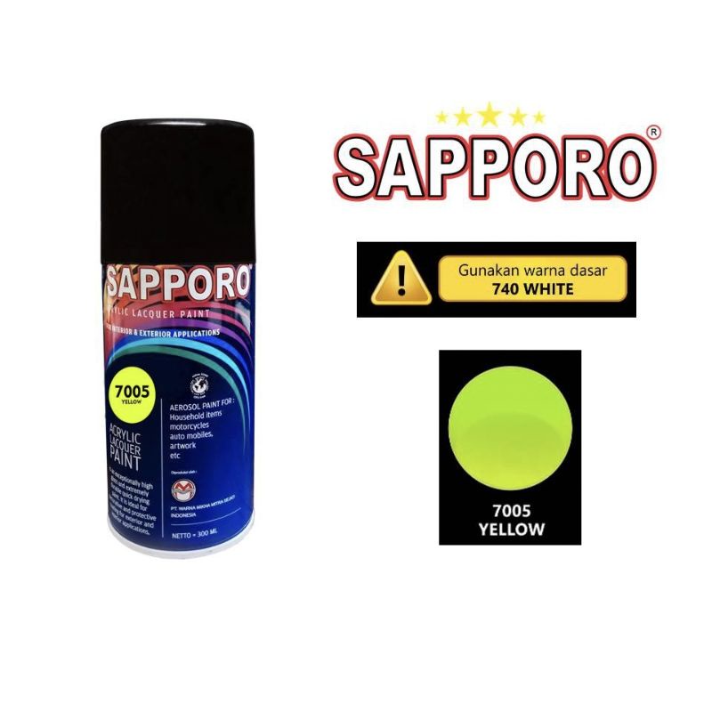 SAPPORO SCOTCHLIGHT 7005 YELLOW KUNING STABILO CAT SEMPROT SPRAY PAINT WARNA FLOURESCENT saporo bukan merk PYLOX DITON SAMURAI RJ PILOX PILOK ARTONE