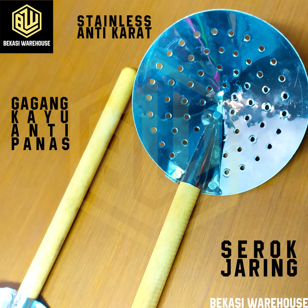 SARINGAN LUBANG STAINLESS TEBAL / SEROKAN PENGGORENGAN / SEROKAN STAINLESS UKURAN SEDANG / SEROKAN STAINLESS MURAH / SARINGAN MINYAK GAGANG JAYU / SARINGAN MINYAK BEKASI