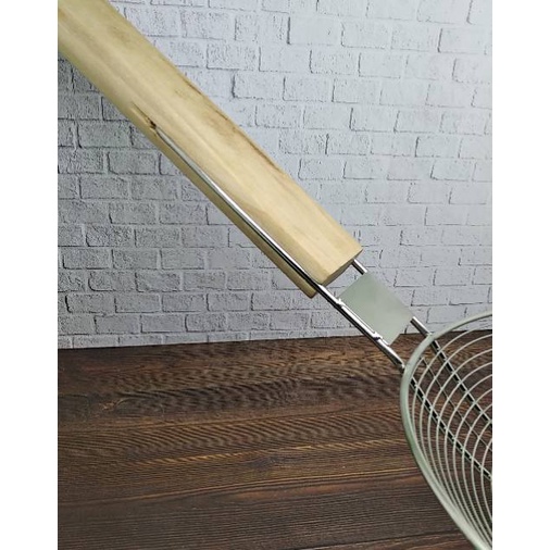 SARINGAN STAINLESS 22 CM GAGANG TAYO SARINGAN GORENGAN KERUPUK SARINGAN GAGANG KAYU