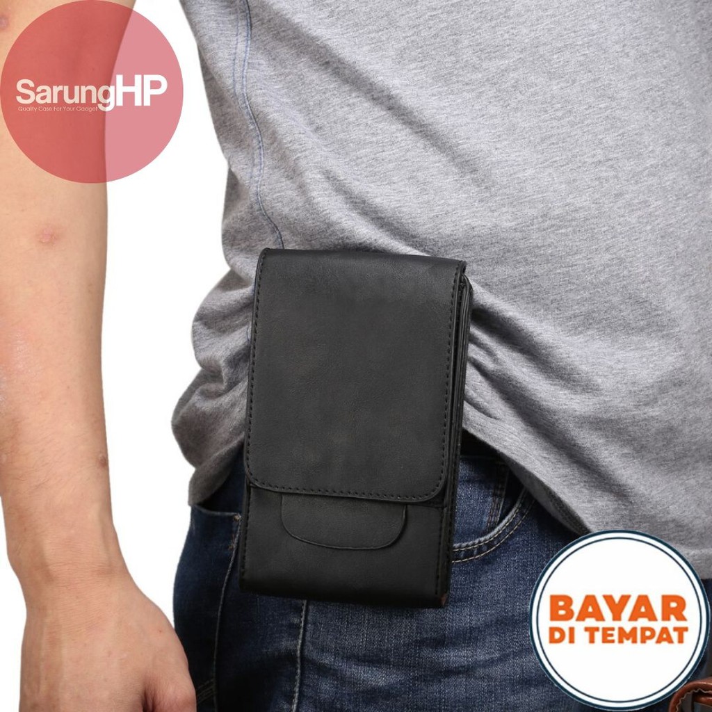 SARUNG HP Dompet Tas Pinggang Kulit 2HP Slot Kartu 6,5 - 6,7 Inch Vertikal Universal