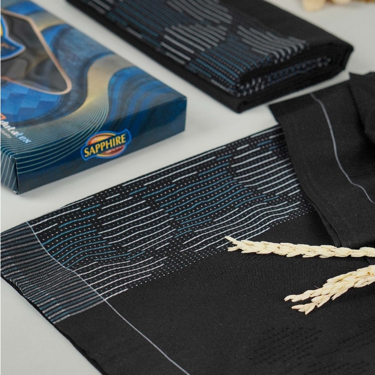 Sarung Sapphire Exclusive HT Hitam Tumpal Sarung Sholat Pria Laki Laki Dewasa