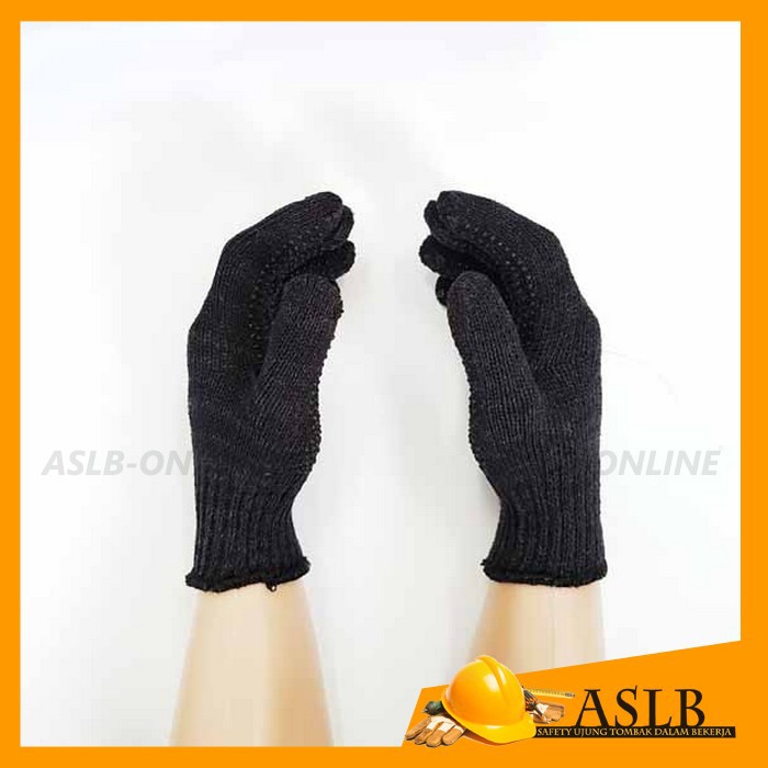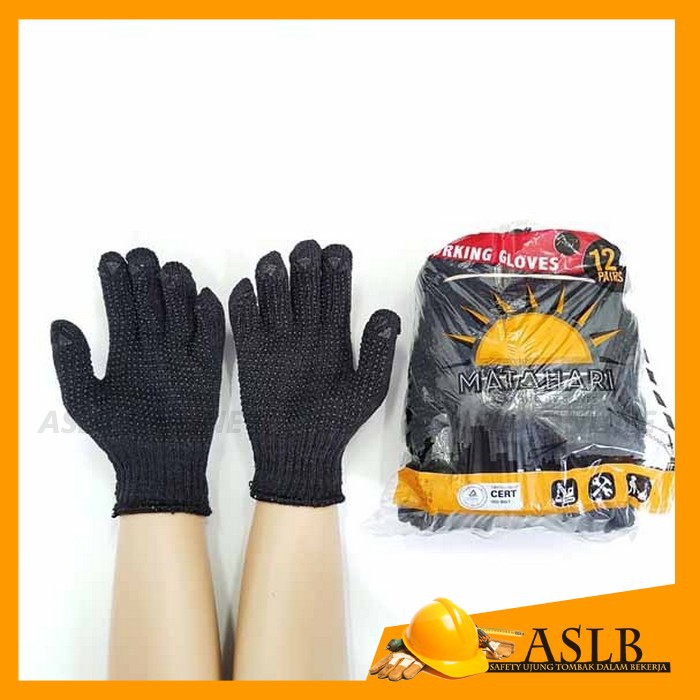 ASLB - 12 Pasang Sarung Tangan Hitam Matahari Bintik Hitam / Sarung Tangan Proyek Safety Kerja / Safety Gloves Anti Slip