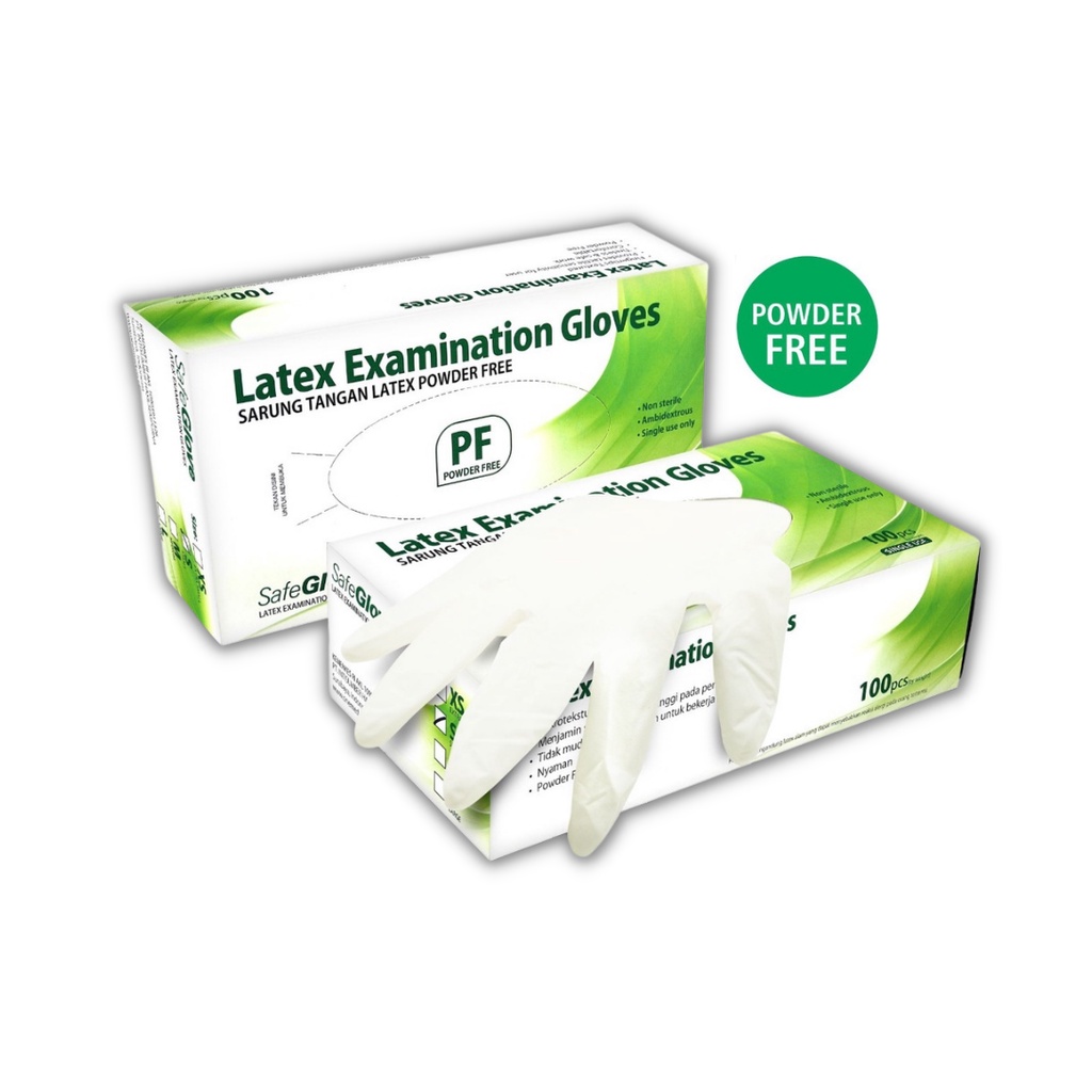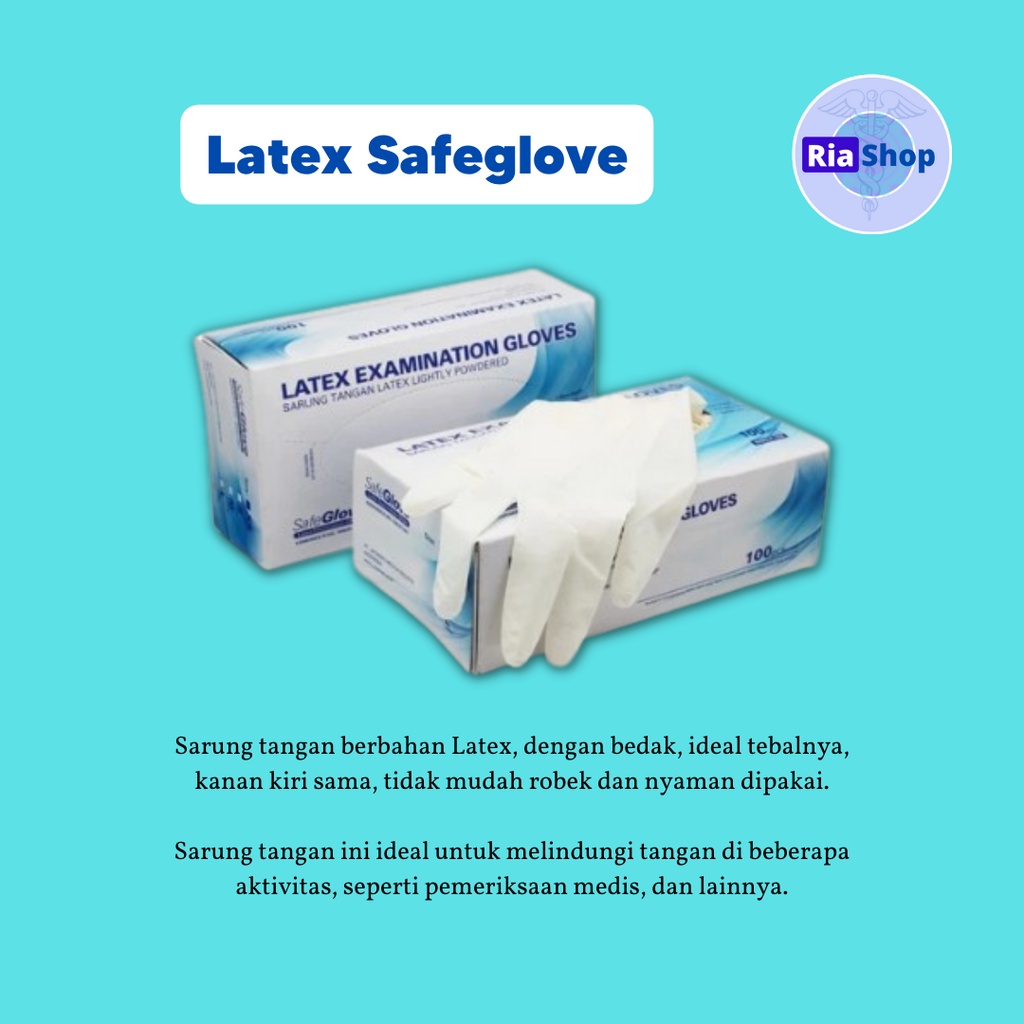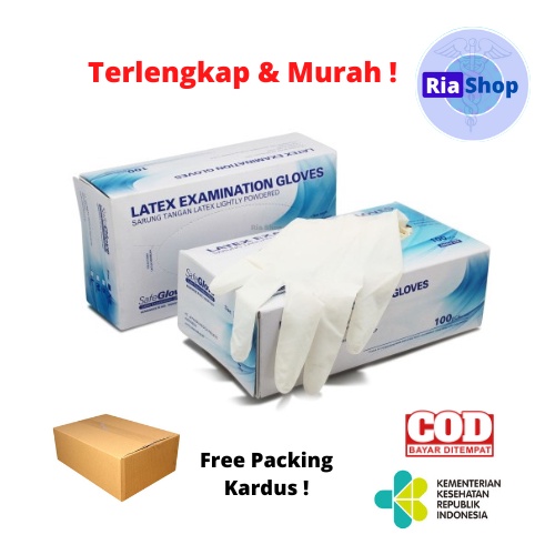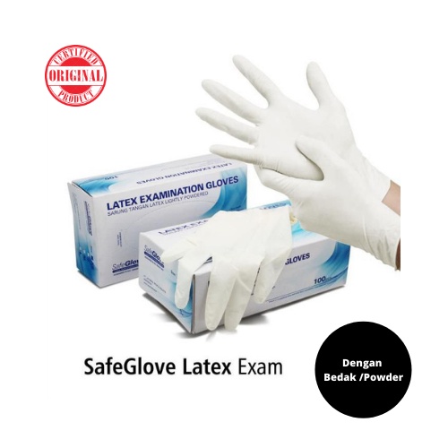 SARUNG TANGAN LATEX SAFE GLOVE | SARUNG TANGAN MEDIS | HANDSCOON MEDIS | SARUNG TANGAN KARET LATEX SG/ALTMD ISI 100 PCS