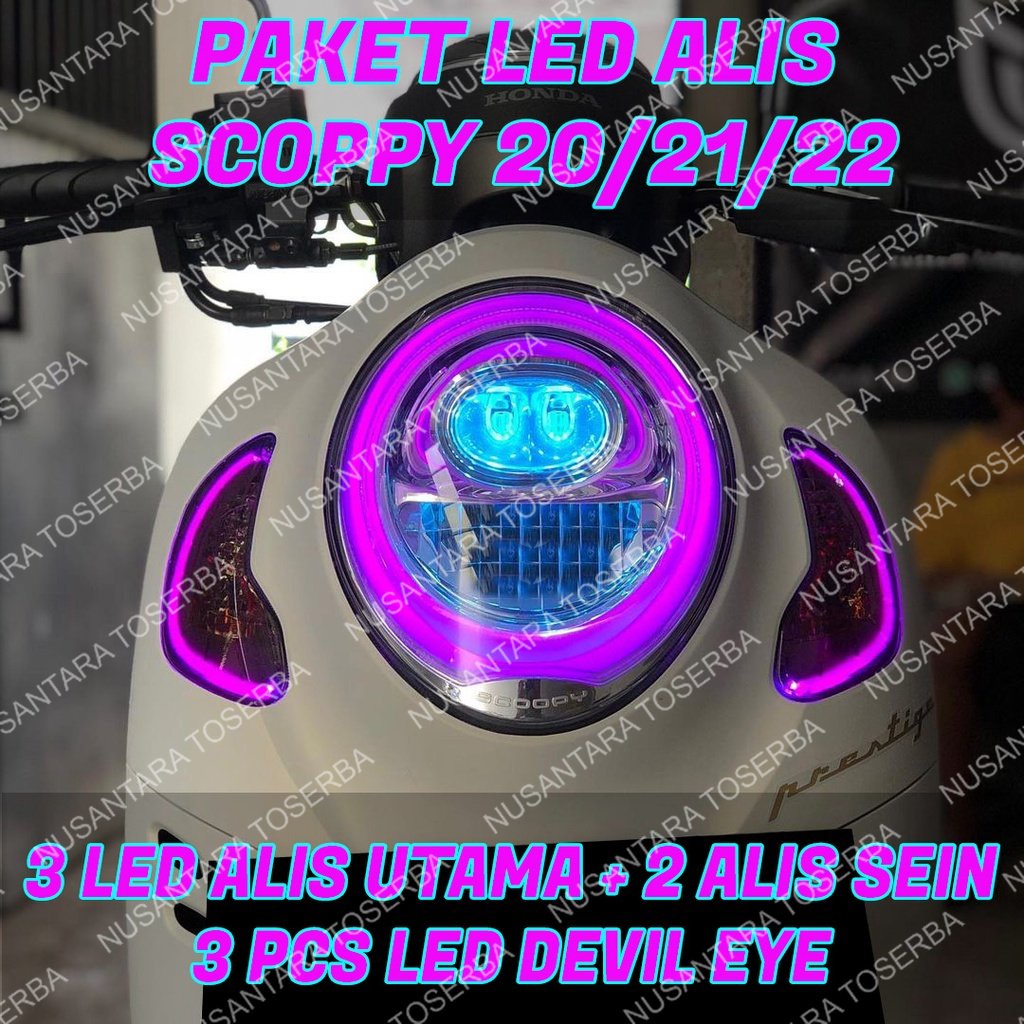SATU PAKET LAMPU ALIS ALL NEW SCOOPY BONUS DEVIL EYE NON TINTIK LAMPU LED ALIS GRADE A NON BINTIK LAMPU ALIS DRL LED BONUS ALIS SEIN ALL NEW SCOOPY 2020 2021 2022 LAMPU SENJA LAMPU BERGARANSI