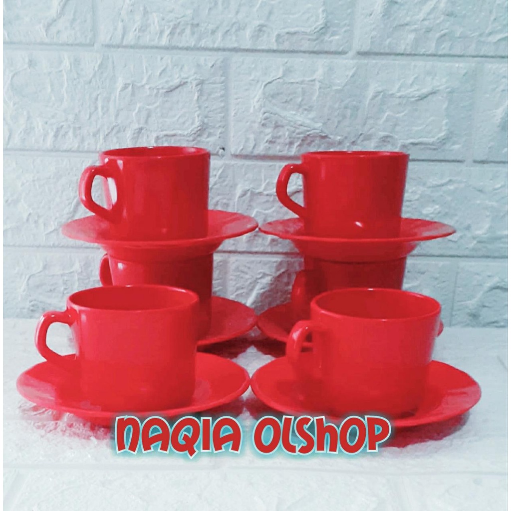 SATU SET CANGKIR KOPI MELAMIN ISI 6PCS CANGKIR & 6PCS PIRING TATAKAN ASLI MELAMIN HARGA GROSIR