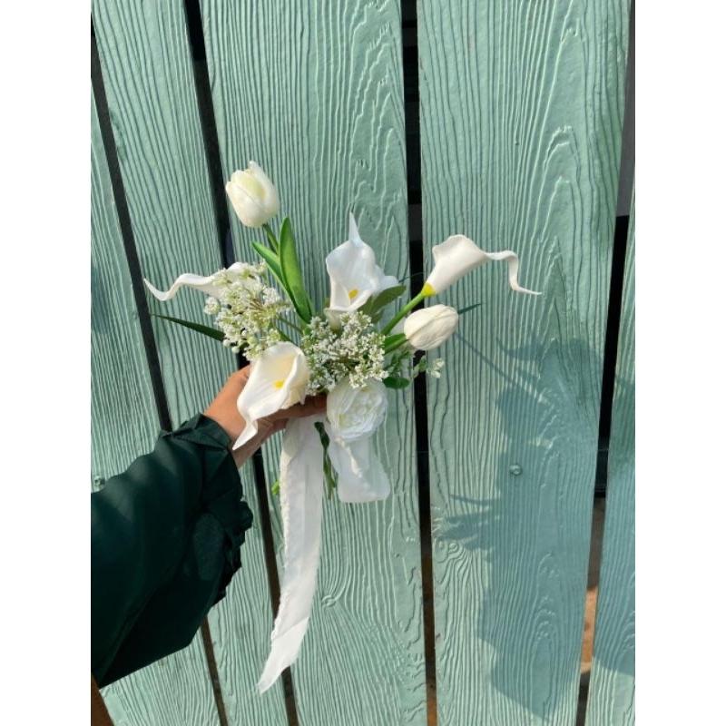 TIANA SATU SET POSY BRIDAL BOUQUET BUKET BUNGA PENGANTIN BRIDAL TULIP LILY CALLA KOREAN KOREA SIMPLE BUNGA ARTIFICIAL