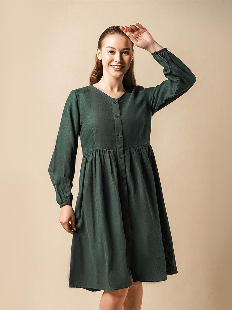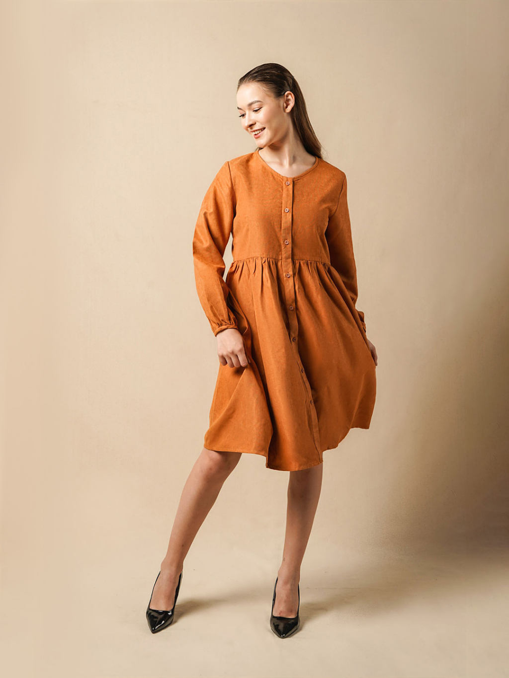 SAVIO Lexington Dress - Dress Midi Tangan Panjang Wanita Corduroy