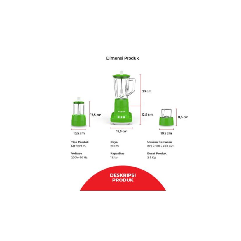 SB BLENDER MT-1273 PL 220V MP / BLENDER PLASTIK MASPION