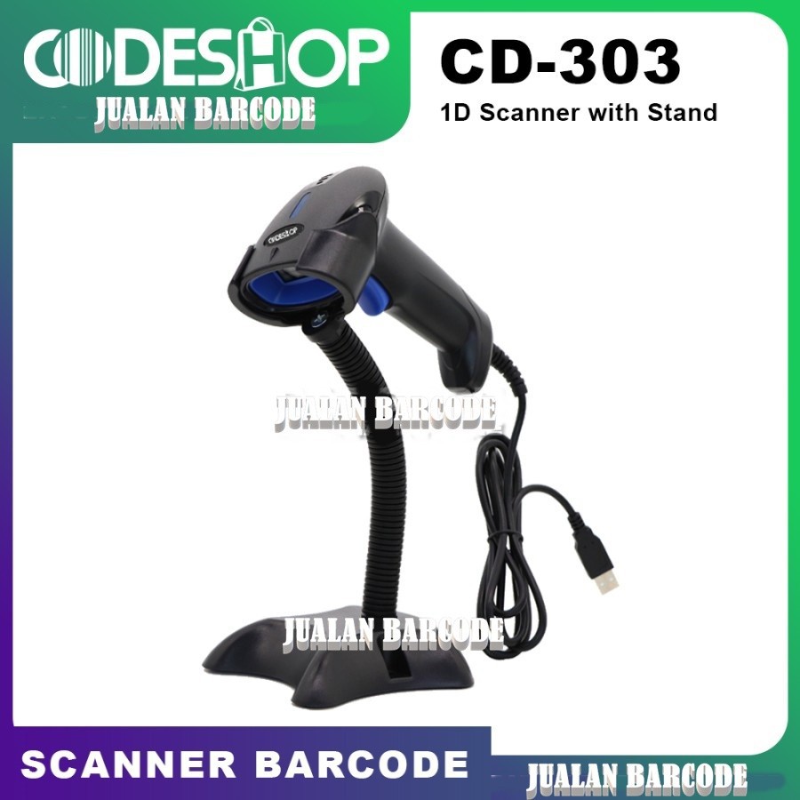SCANNER BARCODE CODESHOP CD-303 CD303 CD 303 Barcode Scanner 1D Laser USB Plus Stand