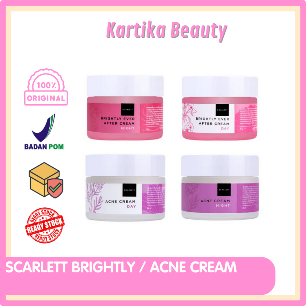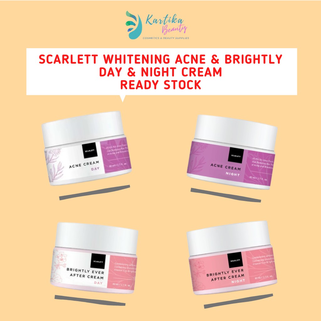 SCARLETT WHITENING CREAM : ACNE DAY / NIGHT CREAM & BRIGHTLY DAY / NIGHT CREAM | SCARLET SKIN CARE WAJAH KRIM PELEMBAB SIANG MALAM SKARLET