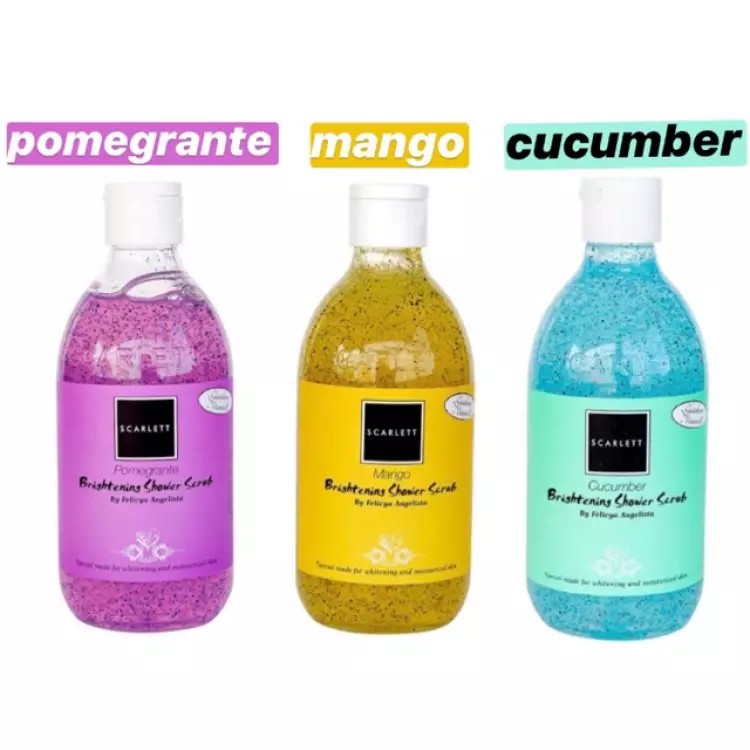 SCARLETT Whitening Shower Scrub Pomegrante Mango Cucumber Sabun Scarlet ORIGINAL BPOM Brightening