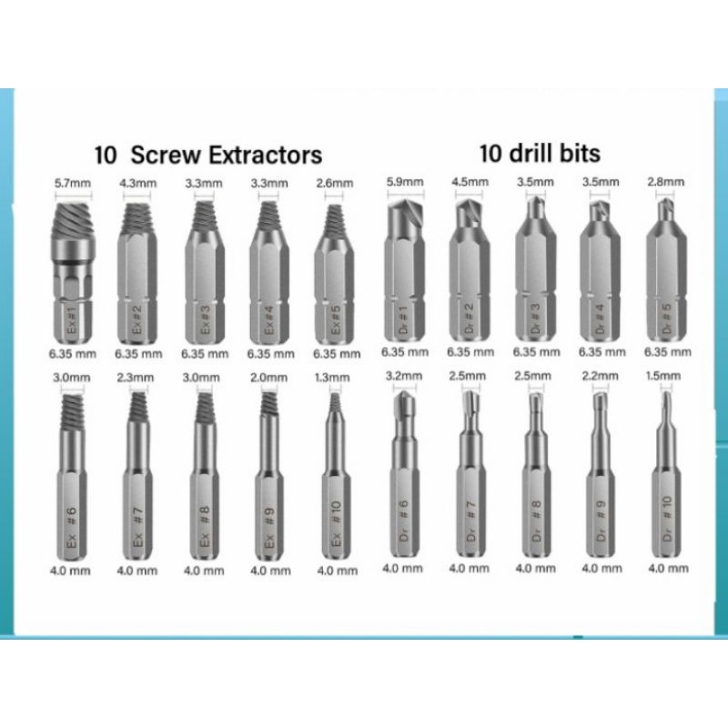 SCREW EXTRACTOR MATA OBENG PEMBUKA BAUT SKRUP RUSAK 22 PCS
