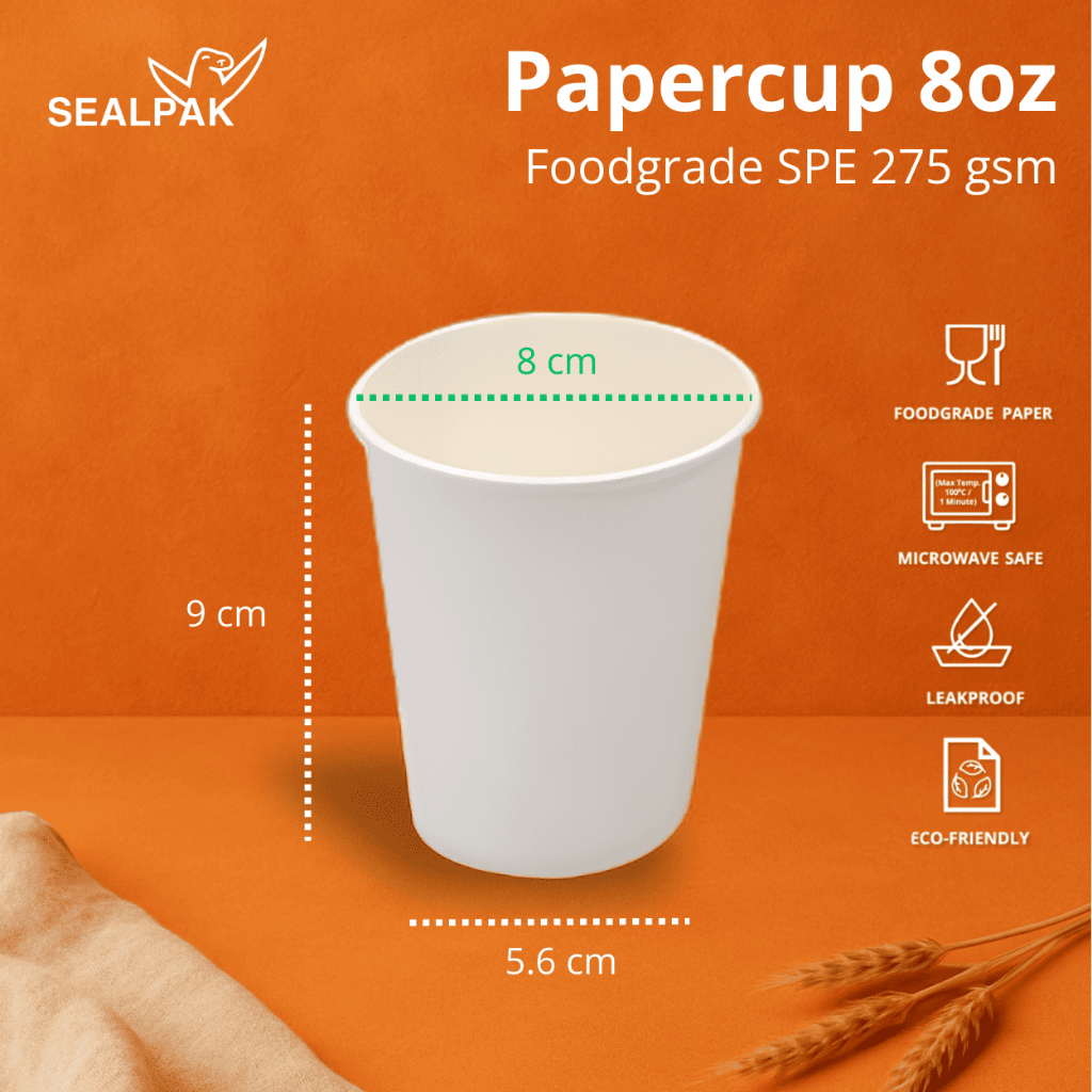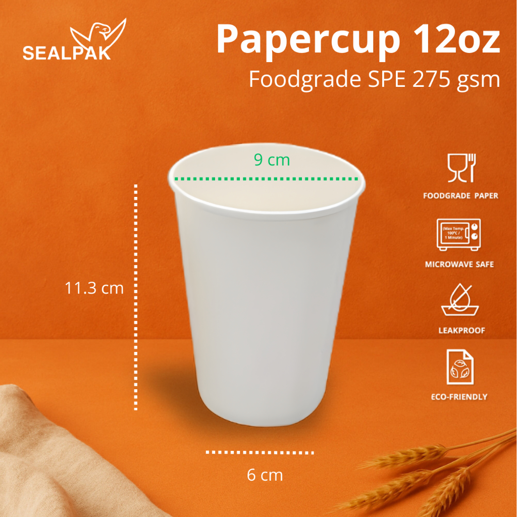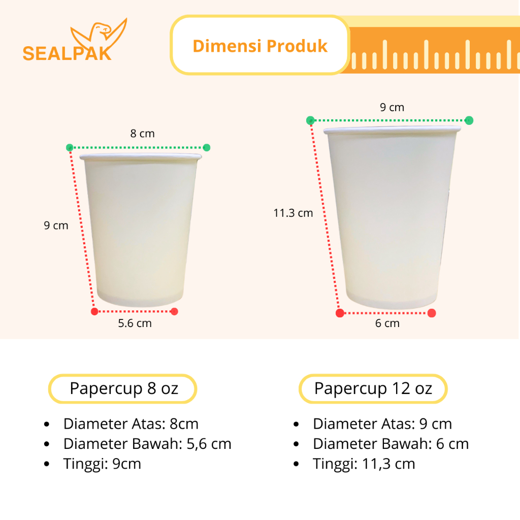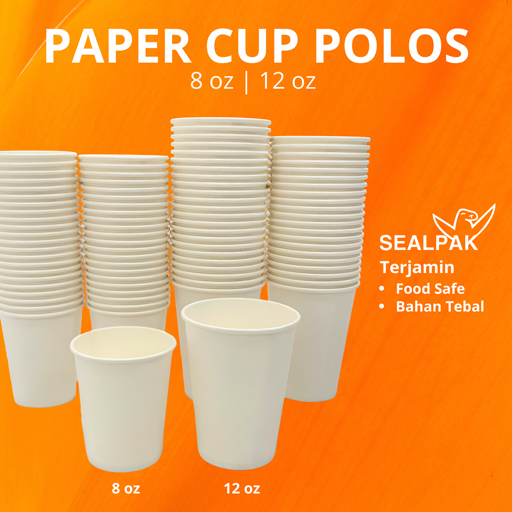 SEALPAK Paper Cup Kertas Tebal Food Grade | ISI 50 Pcs | 8oz 12oz | Polos