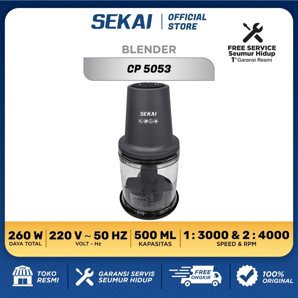 SEKAI Chopper 500ml / 1L / 2L Stainless Multifungsi coper daging dan bumbu chopper daging dan bumbu coper bumbu serbaguna choper - CP 5052 / CP 5101 / CP 5102 / CP 5053