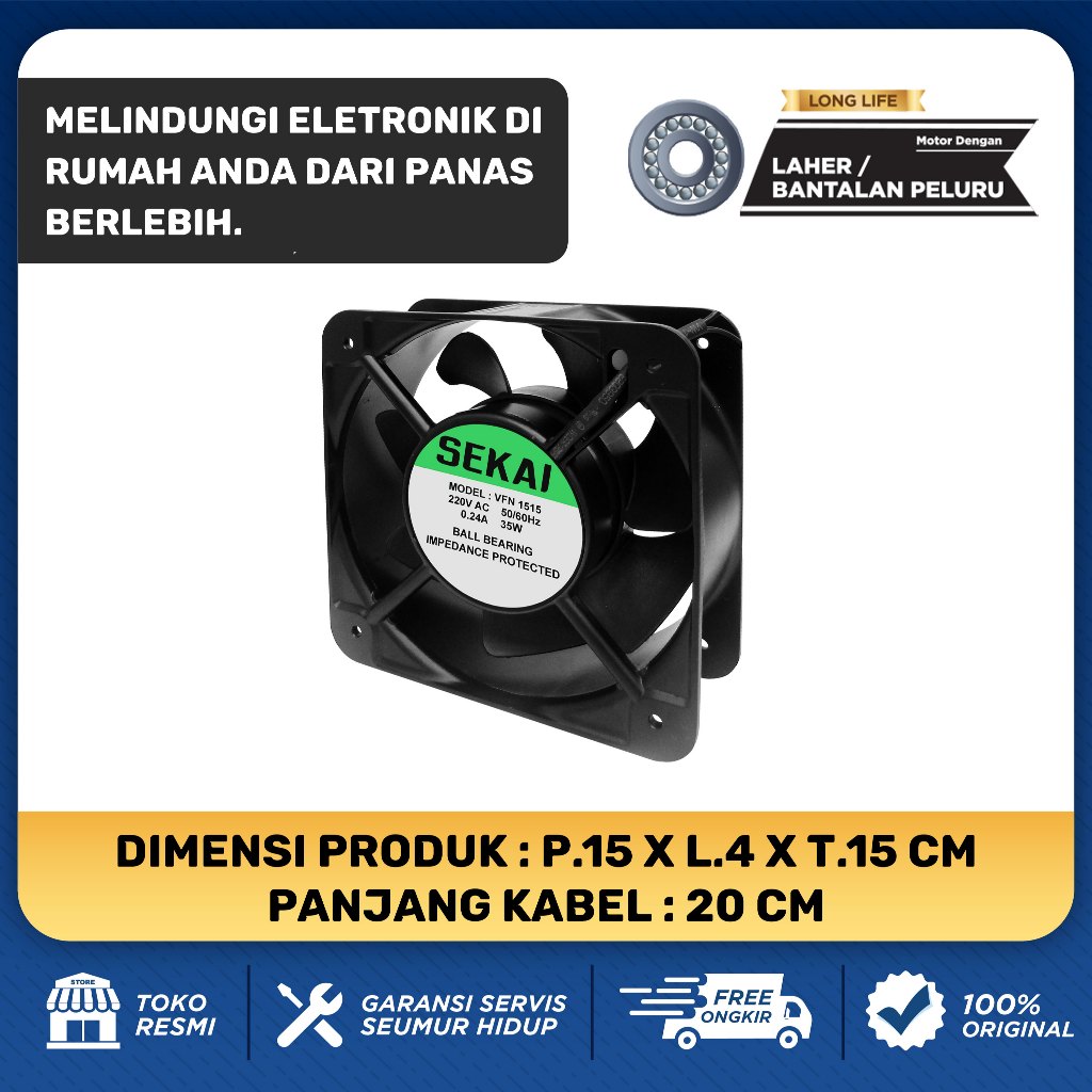 SEKAI Cooling Fan / Kipas Angin mini Partisi Sirkulasi Cooling Fan Panel Listrik 15cm - VFN 1515
