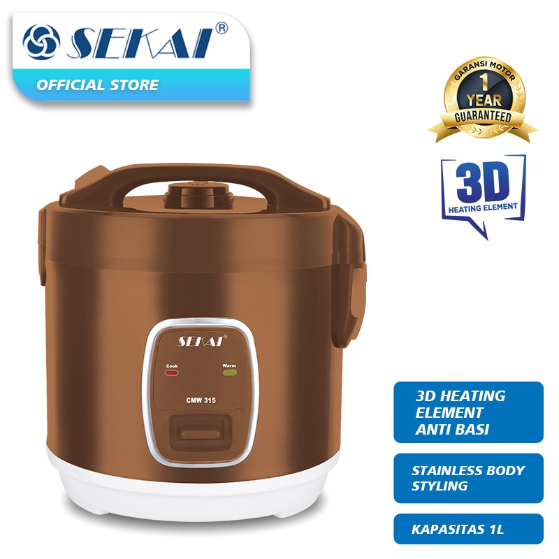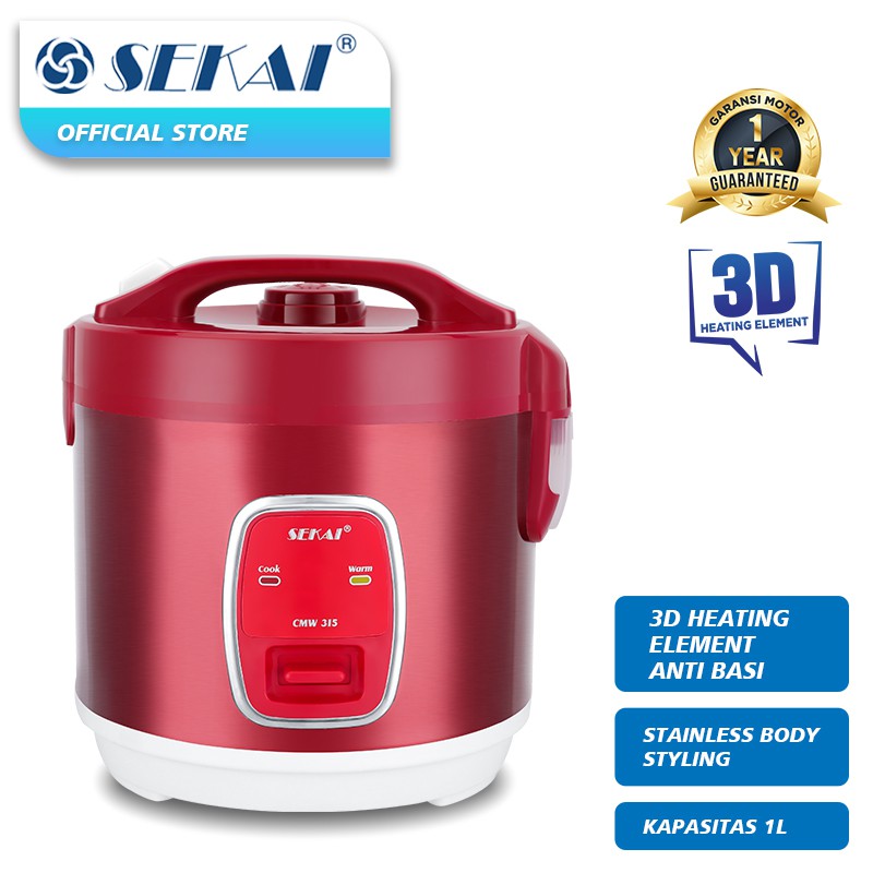 SEKAI Rice Cooker 3D Heating Element with Stainless Body Styling CMW 315