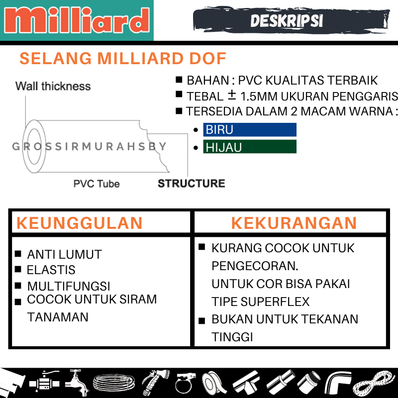 SELANG AIR MILLIARD DOF 1/2 INCHI ( HARGA PERMETER )