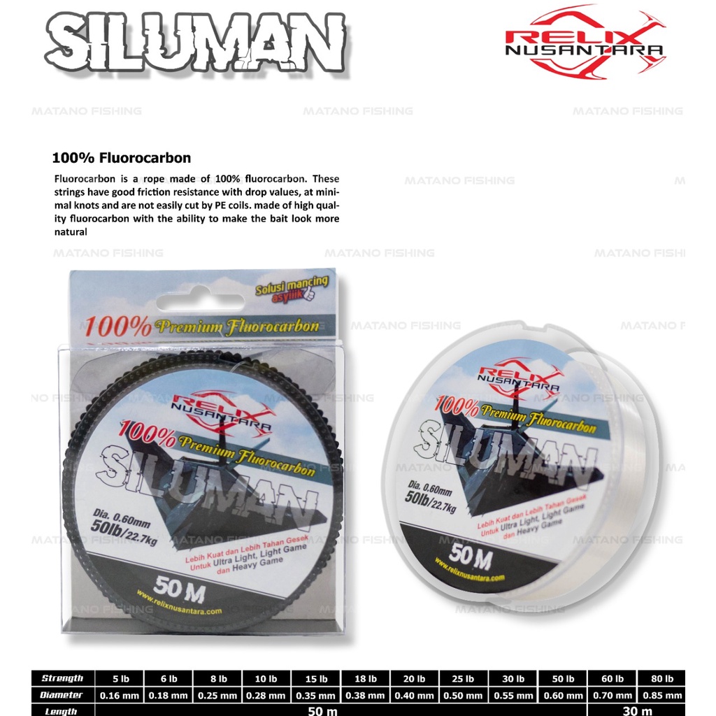 SENAR PANCING SILUMAN RELIX NUSANTARA 100% FLUOROCARBON 50M / 30M KUAT ANTI GESER