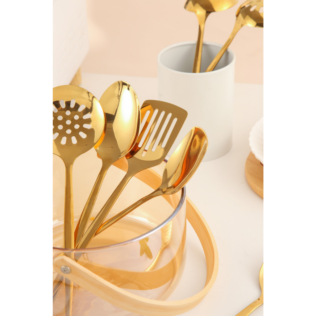 SENDOK MASAK SPATULA STAINLESS GOLD/SENDOK SUP/CENTONG/SENDOK SARINGAN/PERALATAN DAPUR TAHAN PANAS