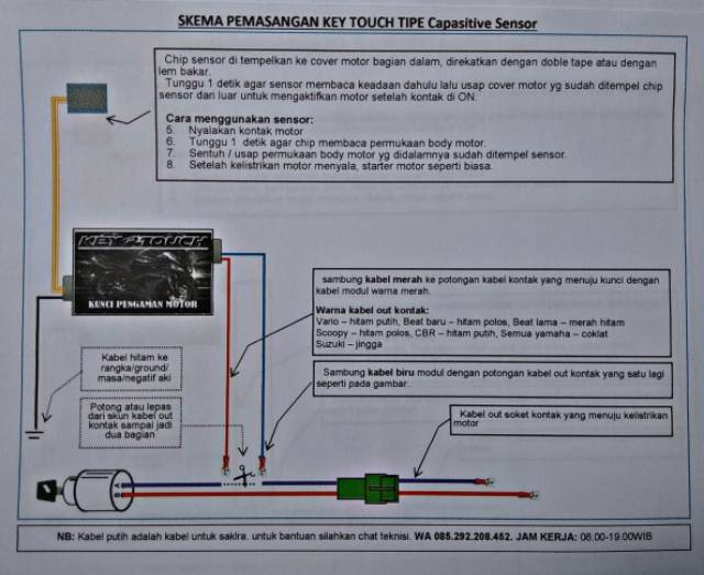 SENSOR SENTUH USAP BODY LENGKAP kunci rahasia sensor sentuh pengaman motor kunci ganda key touch