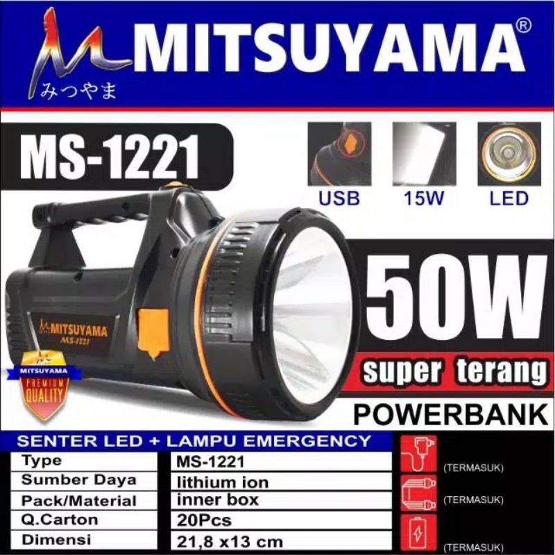 SENTER JUMBO LED MITSUYAMA 50 Watt MS-1221 Super Terang // SENTER 50 WATT + lampu emergency + powerbank MS-1221 | FMS