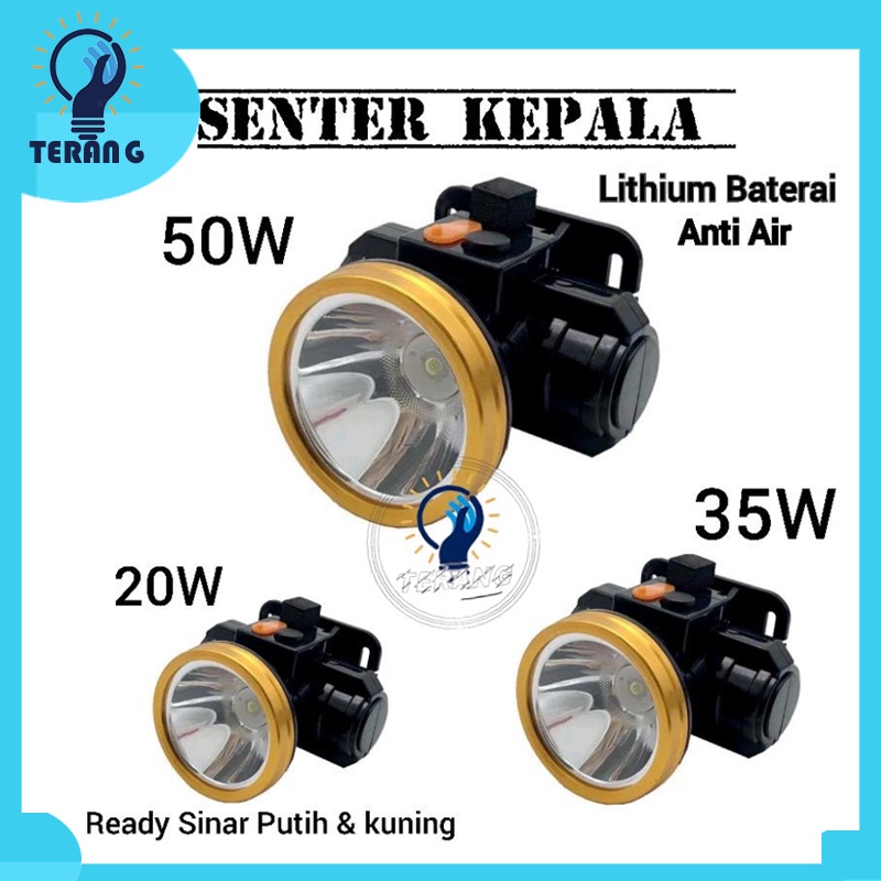 SENTER KEPALA 20 30WATT BISA CHARGE TERANG BATERAI LITHIUM BODY HALUS HEADLAMP CAHAYA KUNING & PUTIH