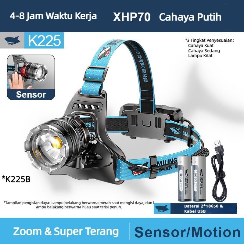 SENTER KEPALA LED SMILING SHARK / Senter Kepala LED Super Terang Headlamp LED Lampu /senter berkemah senter kepala super terang