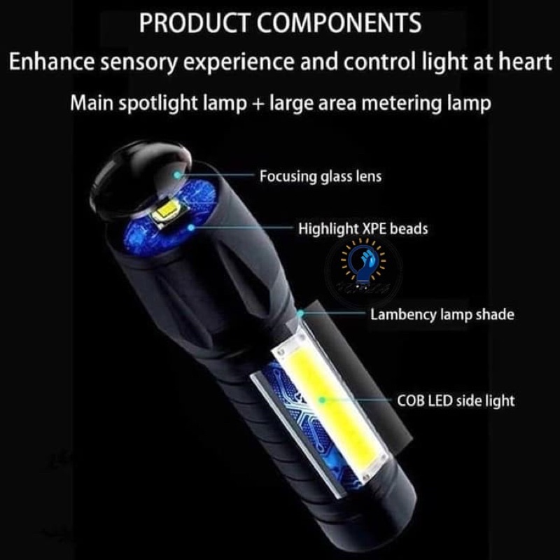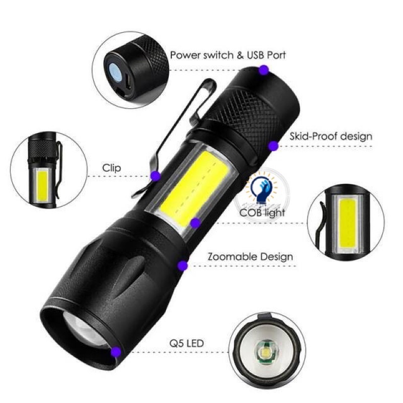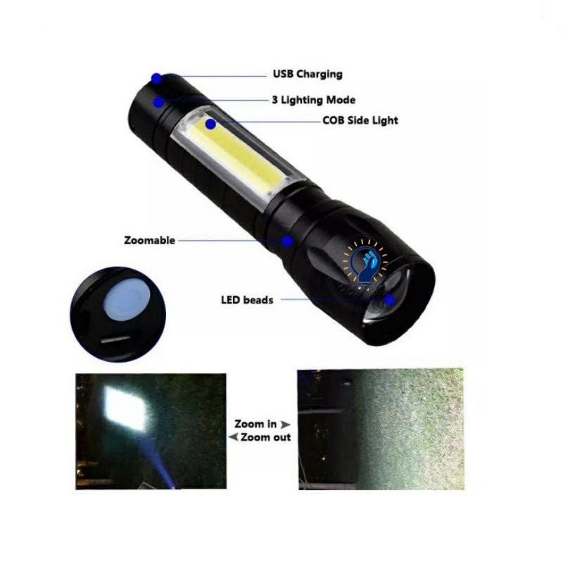 SENTER SWAT MINI ZOOM SENTER POLICE LED MINI ZOOM CAS CHARGE 3 FUNGSI