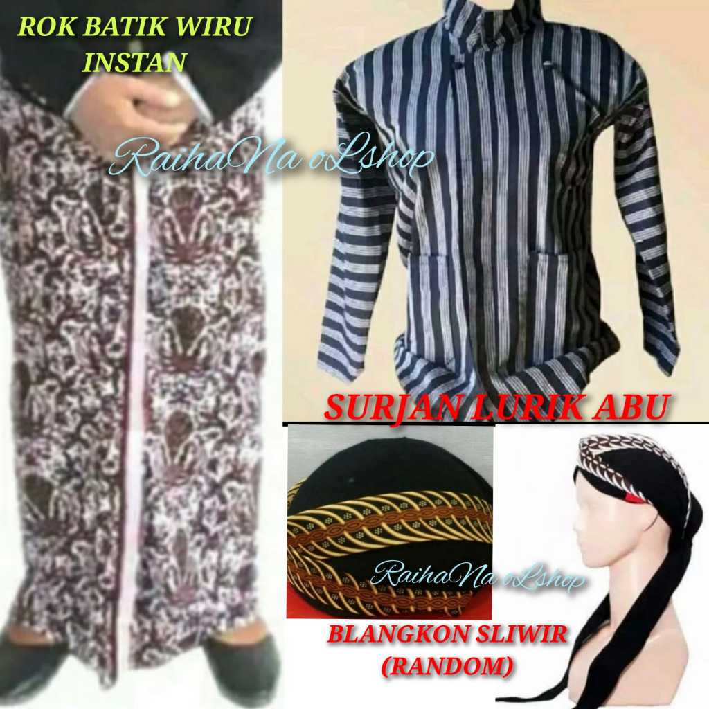 SEPAKET BAJU ADAT JAWA PRIA | SURJAN LURIK ABU HITAM + BLANGKON SLIWIR + ROK BATIK WIRU INSTAN | PAKAIAN NASIONAL LAKI / PRIA ADAT JAWA SOLO JOGJA
