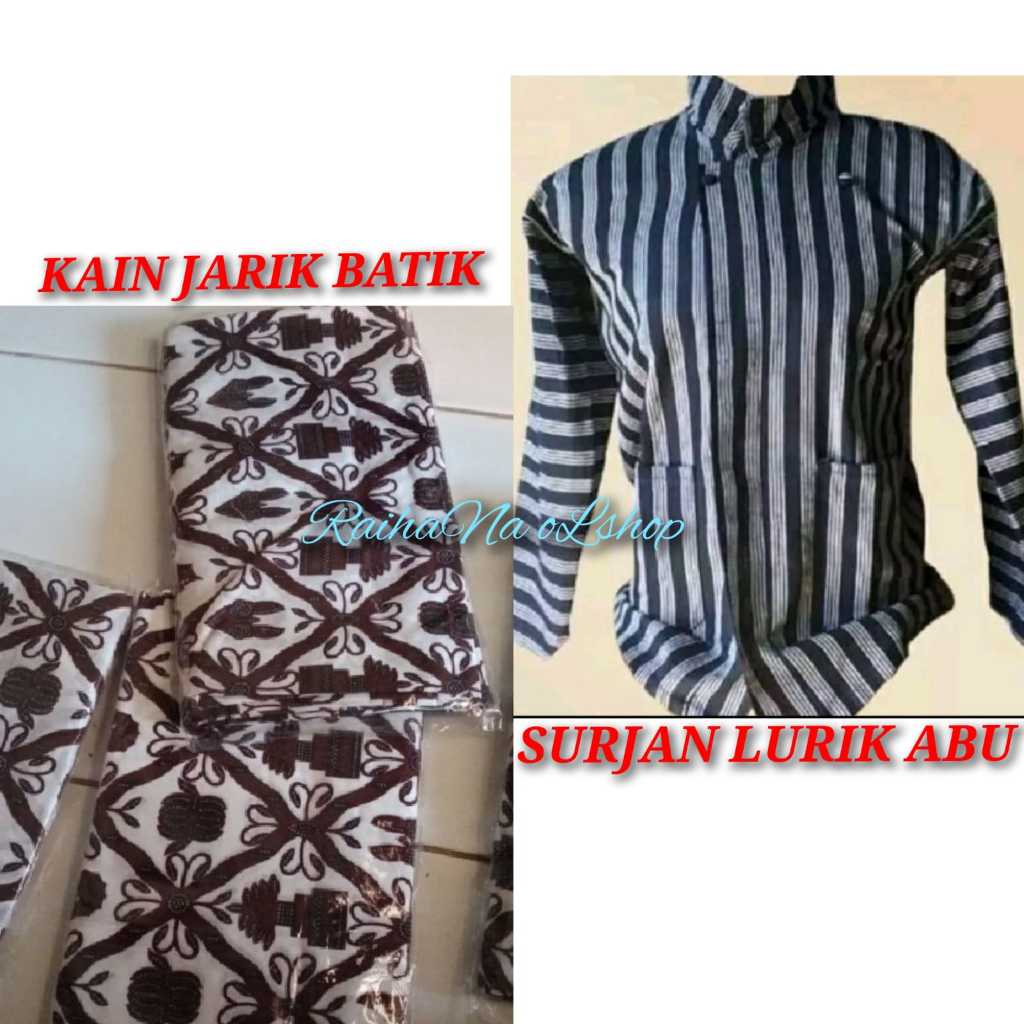 SEPAKET BAJU ADAT JAWA PRIA | SURJAN LURIK ABU HITAM + KAIN JARIK BATIK + BLANGKON SLIWIR | PAKAIAN NASIONAL LAKI / PRIA ADAT JAWA SOLO JOGJA