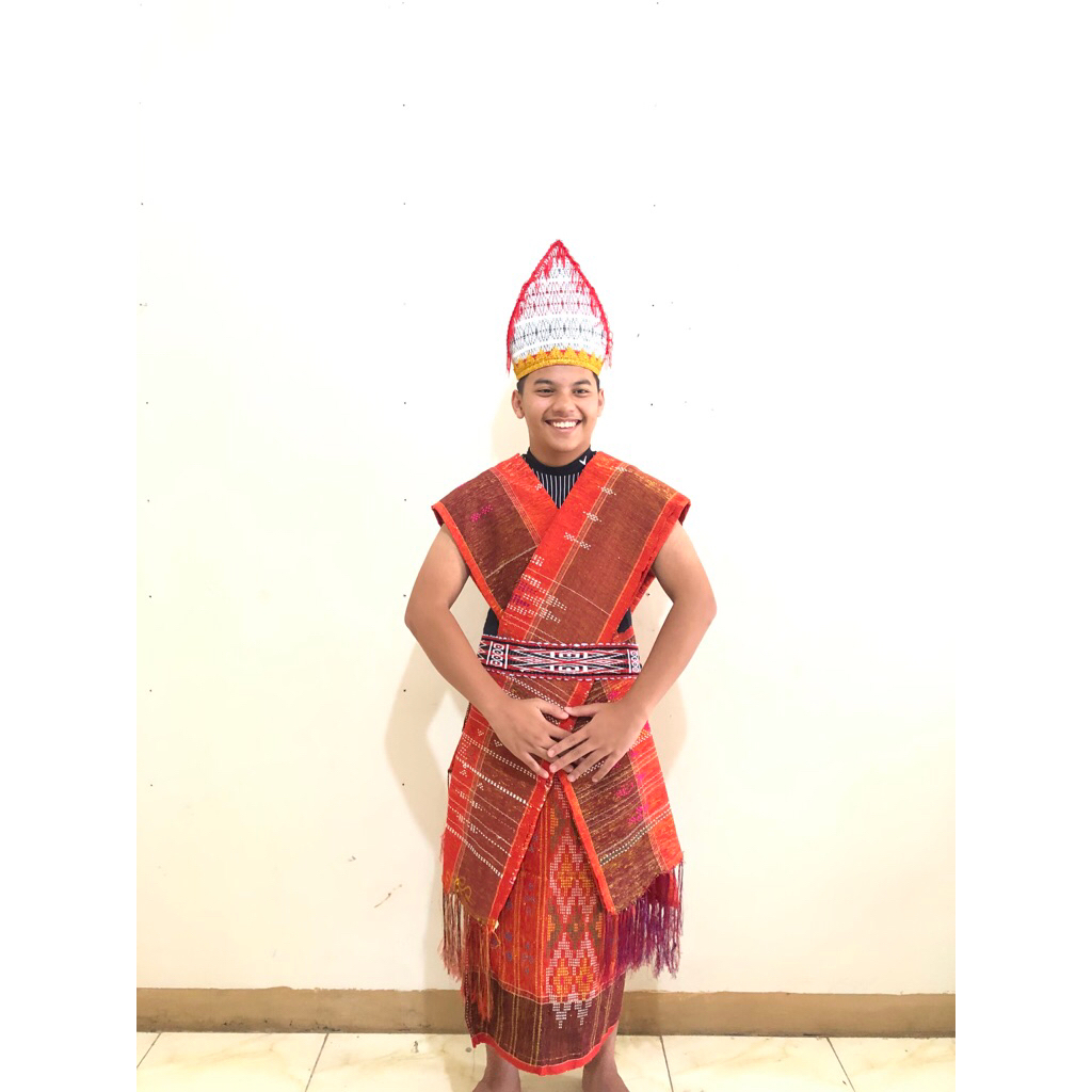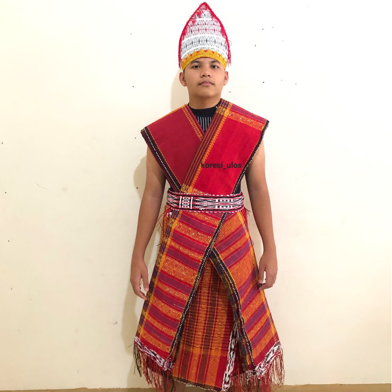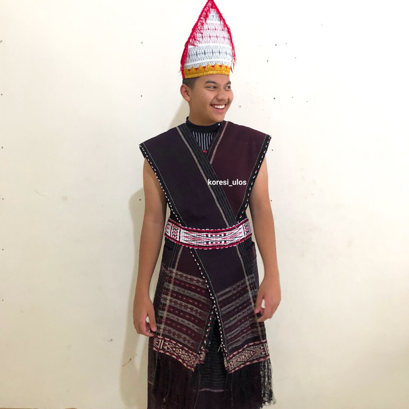 SEPASANG Baju adat batak toba Ulos Sadum Ragihotang Hitam & Merah Sumatera Utara Baju Adat Batak Ulos Pria Kekinian Terbaru 17 Agustus