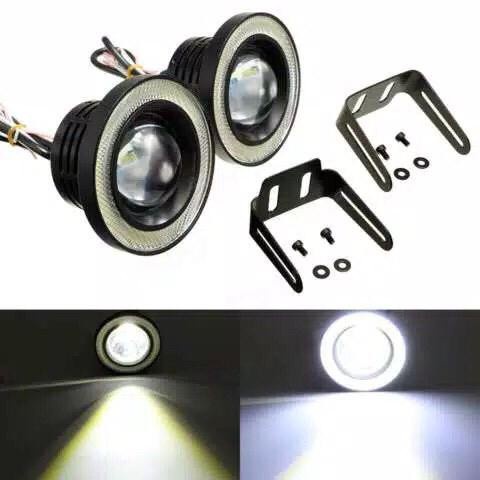 SEPASANG Fog Lamp Angel Eyes LED 89MM eye 89 mm lampu kabut mobil bemper depan sorot foglamp Standing Feet View Jarak Jauh Terbaik