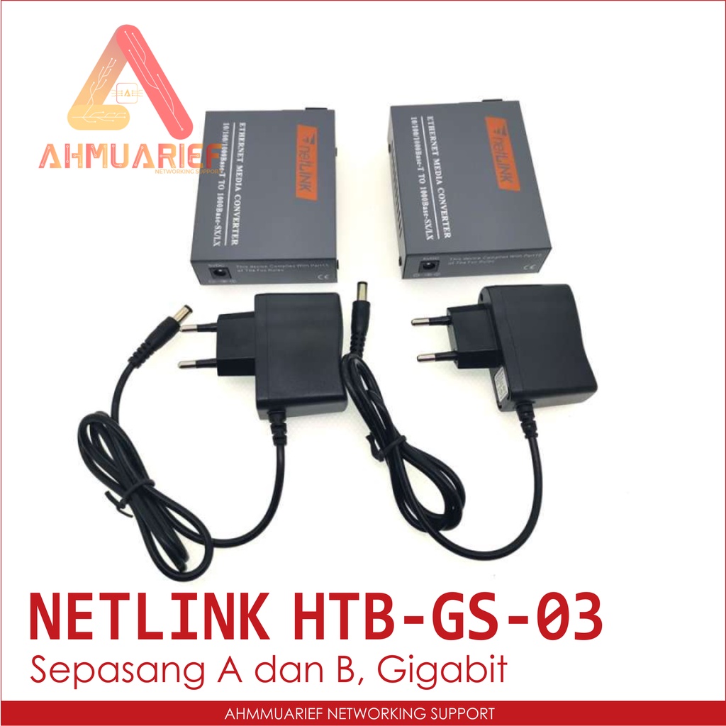 SEPASANG NETLINK HTB GS 03 AB SINGLE MODE GIGABIT FIBER OPTIK ETHERNET MEDIA CONVERTER 10/100M/1000M