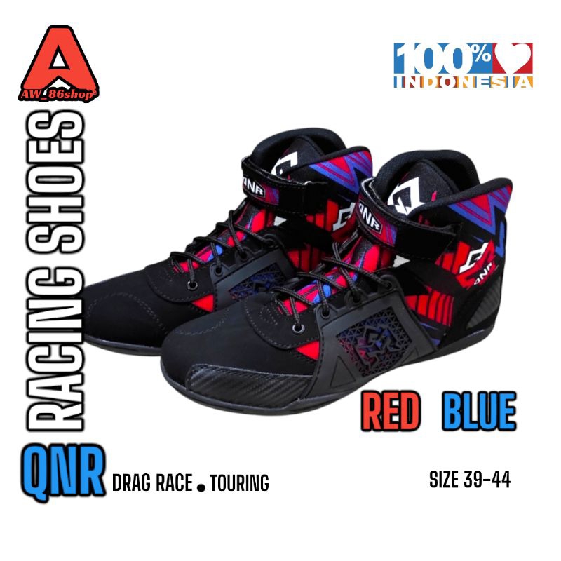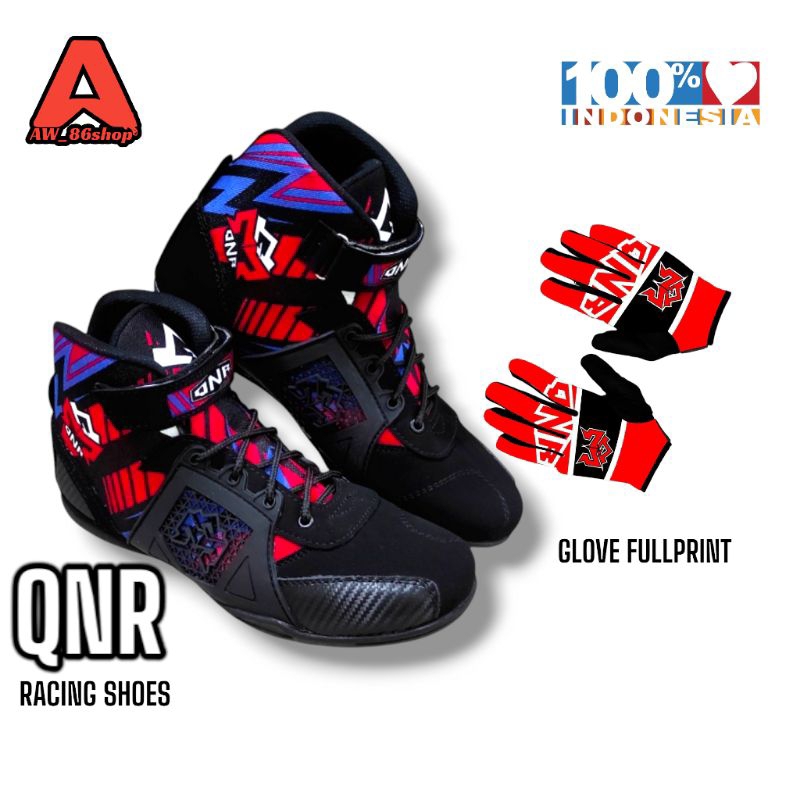 SEPATU BALAP DRAG RACE ROAD RACE TOURING QNR RACING SHOES BIKERS SUNMORI TOURING RED BLUE PAKET HEMAT