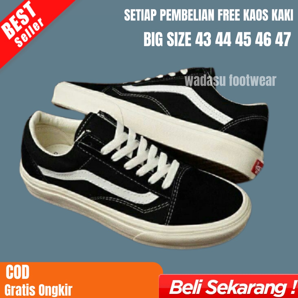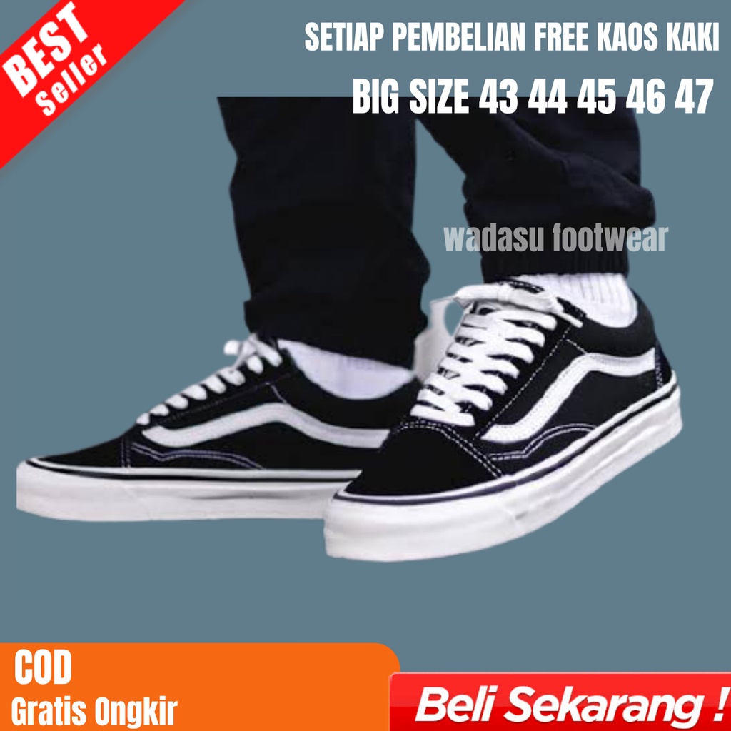 SEPATU BIG SIZE 43 44 45 46 47 Sepatu Sneakers Pria ukuran Besar Sepatu Ukuran jumbo Sepatu sekolah Kuliah Warna Hitam