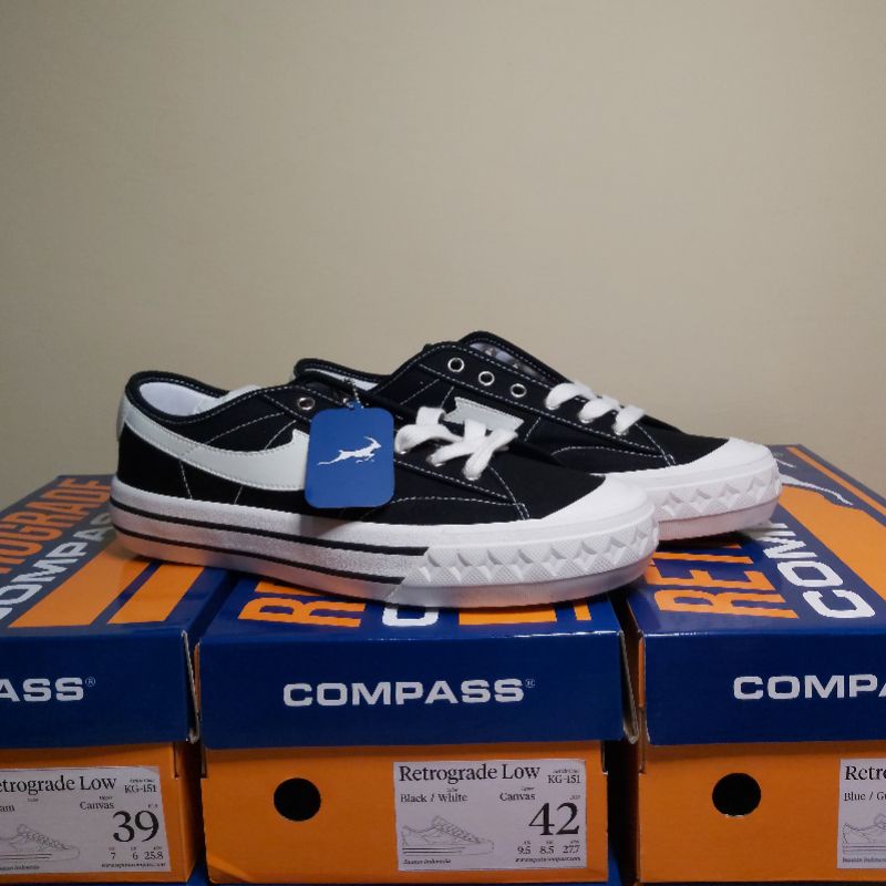 SEPATU COMPASS RETROGRADE LOW BLACK WHITE