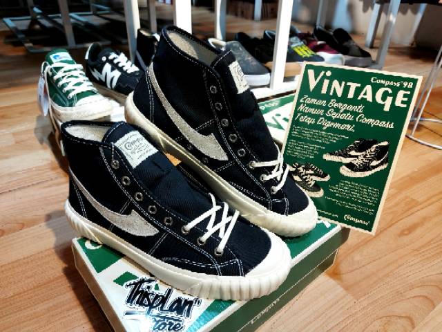 SEPATU COMPASS VINTAGE HIGH BLACK WHITE