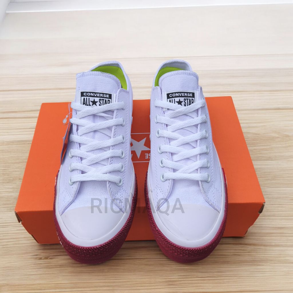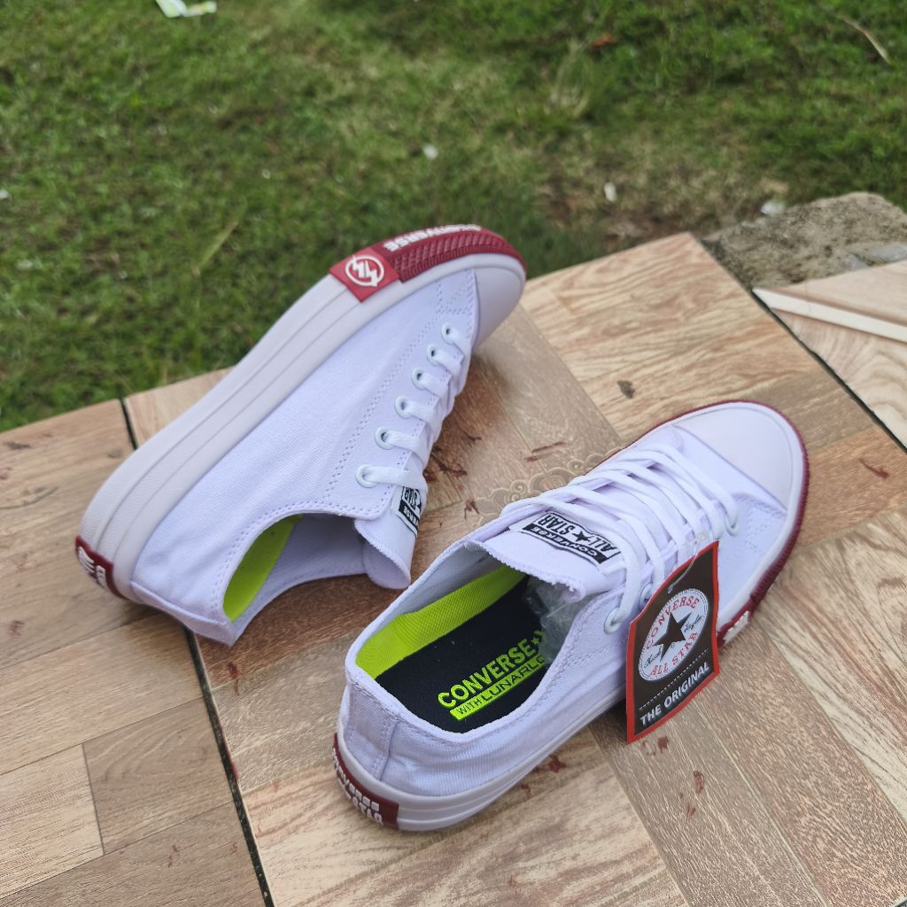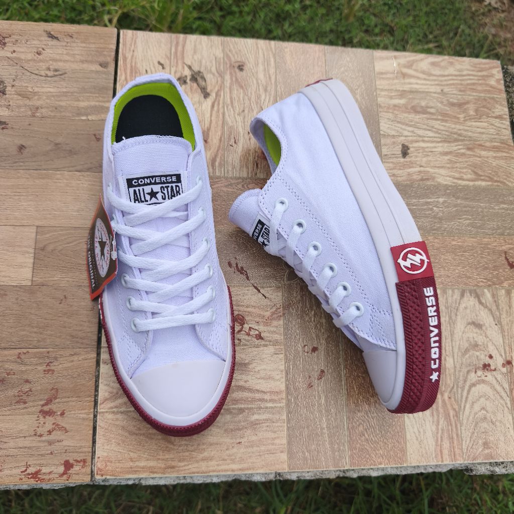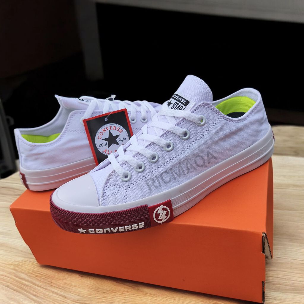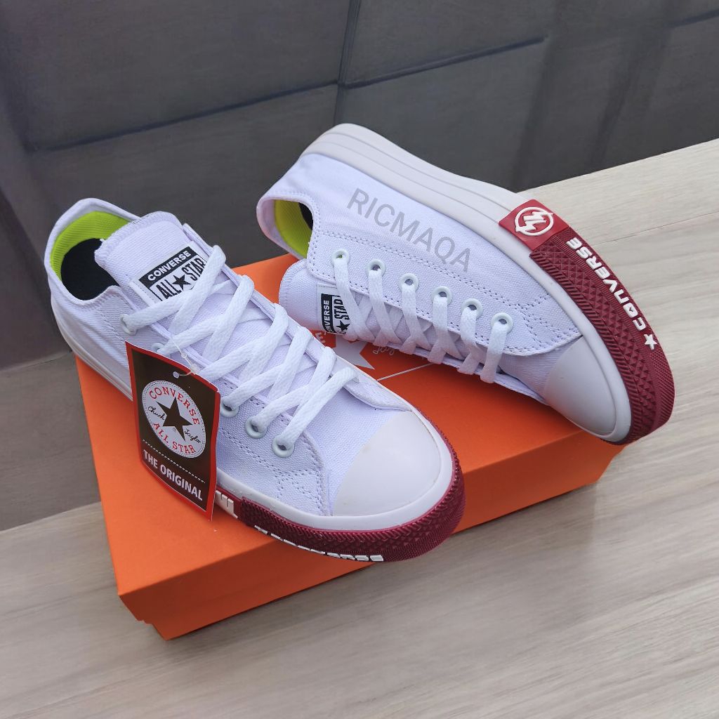 SEPATU PRIA CONVERS ALLSTAR CHUCK TAYLOR CT LOGO PETIR WHITE MARON POLOS LOW PREMIUM