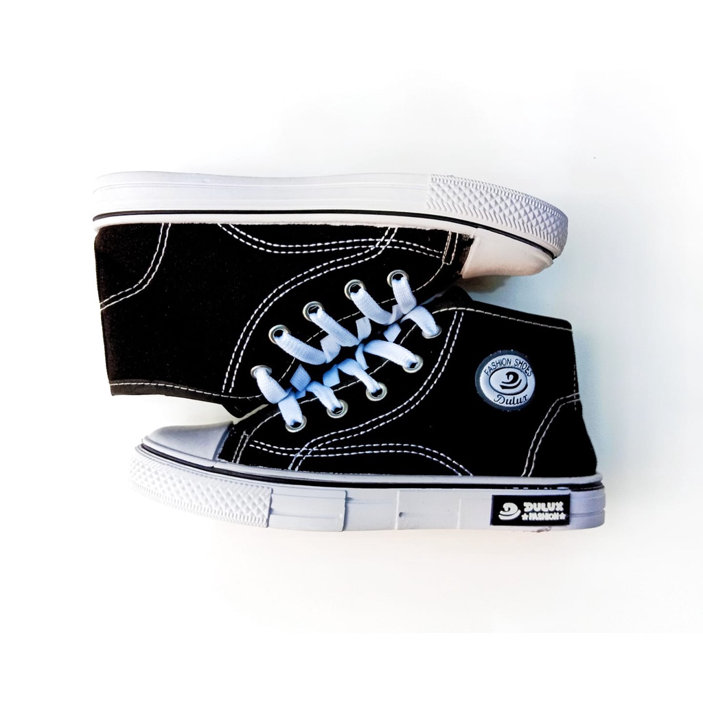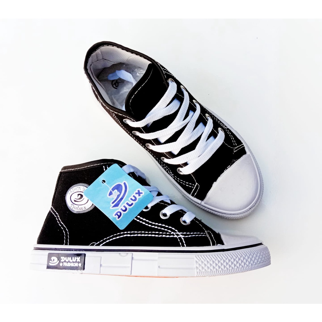 SEPATU SEKOLAH PABRIKAN PASTI AWET HITAM PUTIH DULUX ORIGINAL BOOT TINGGI TALI SIZE 32 - 43