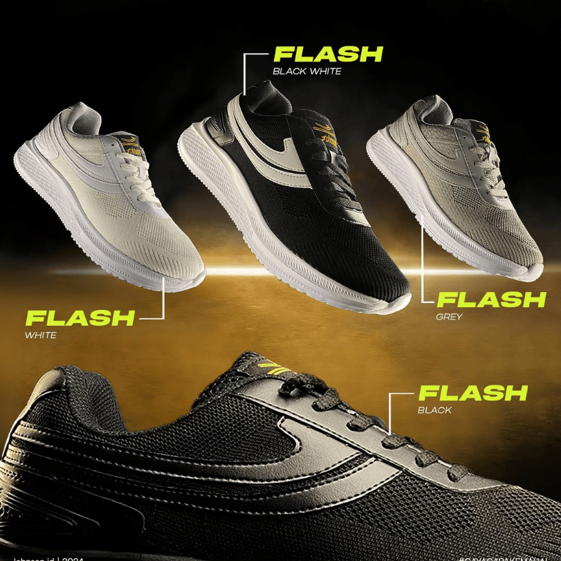 SEPATU SNEAKERS JOHNSON - FLASH BLACK | BLACK WHITE | WHITE | GREY | SPORTY RINGAN PRIA WANITA