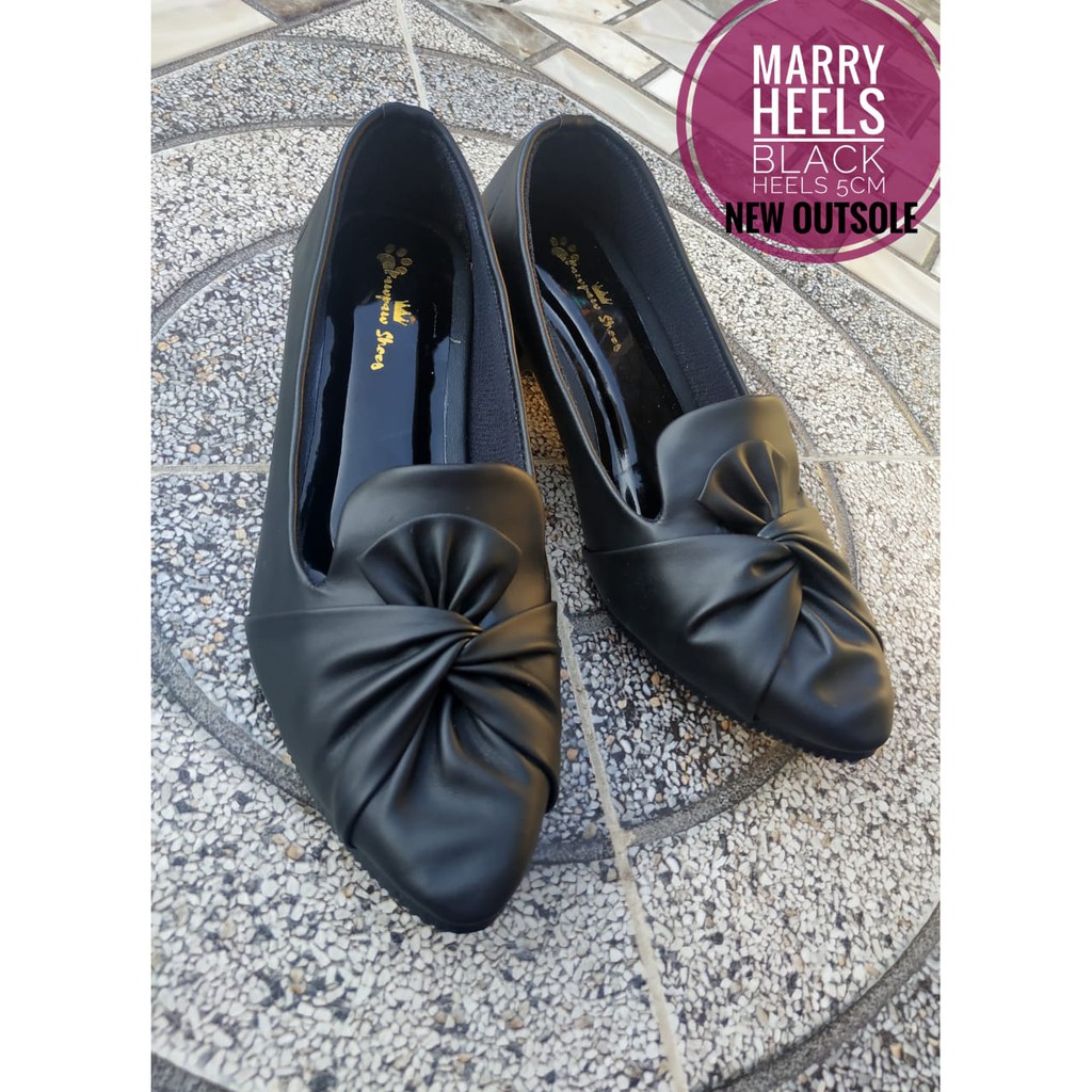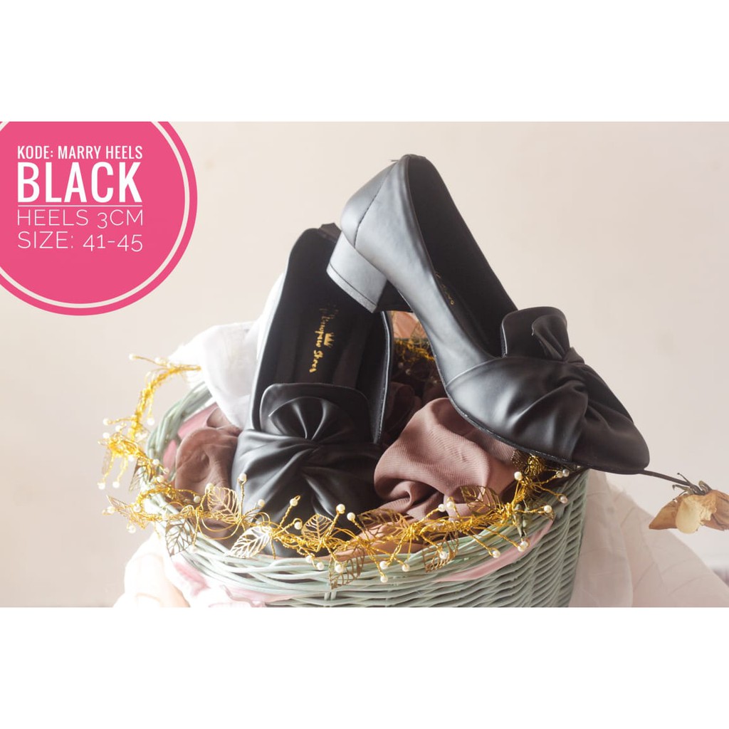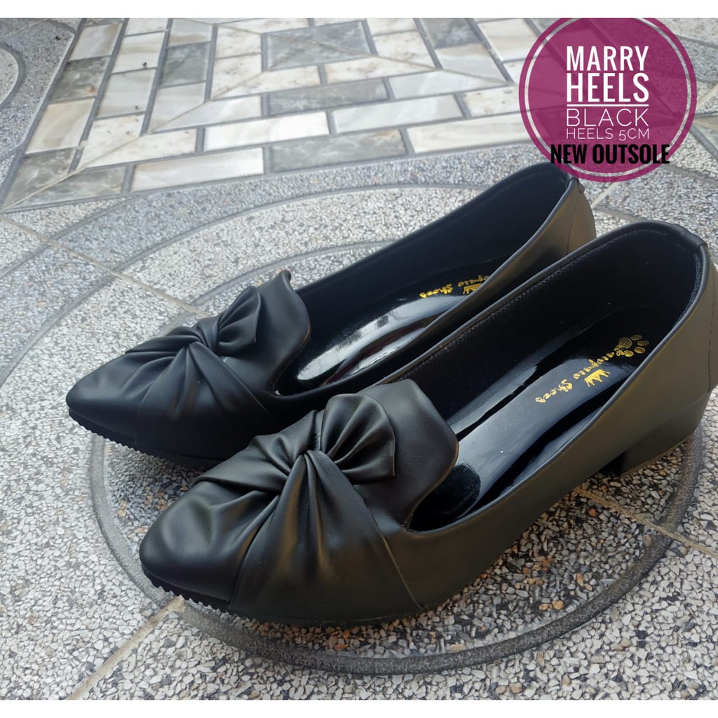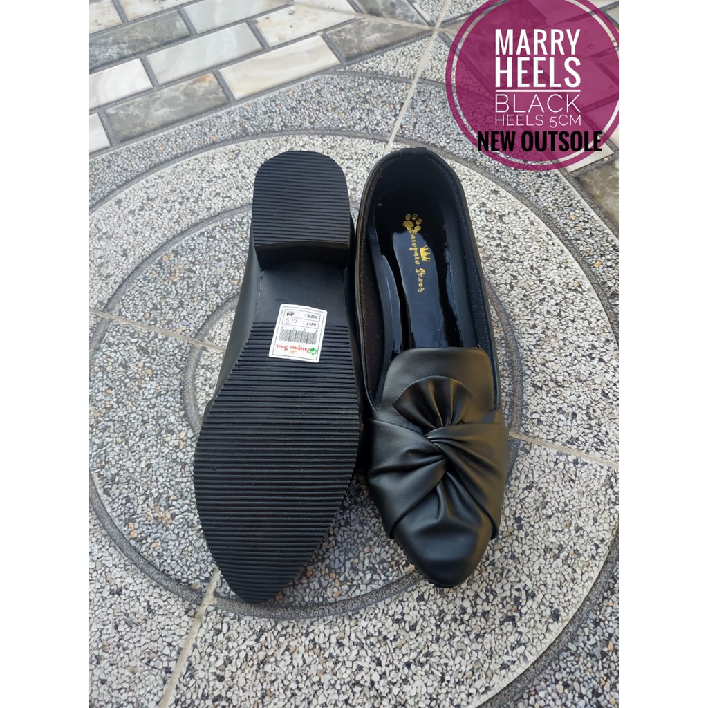 SEPATU WANITA HAK 3 CM MARRY HEELS BLACK BIG SIZE 41 42 43 44 45 PAWPAW SHOES