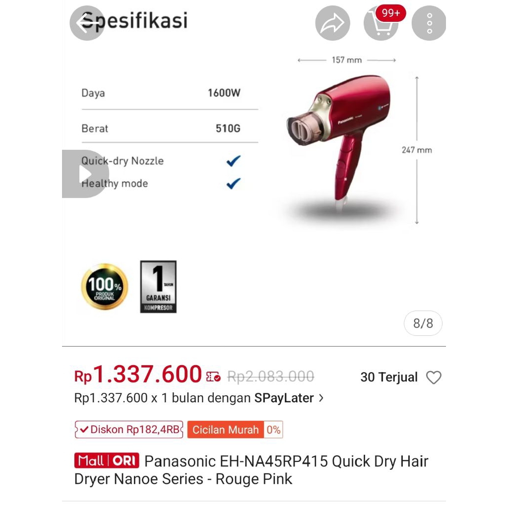 Hair Dryer Panasonic EH-NA45
