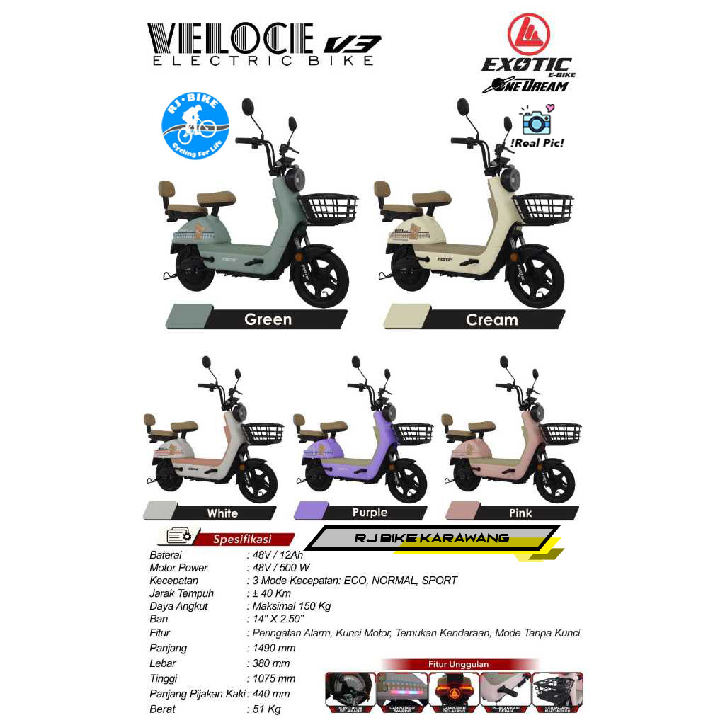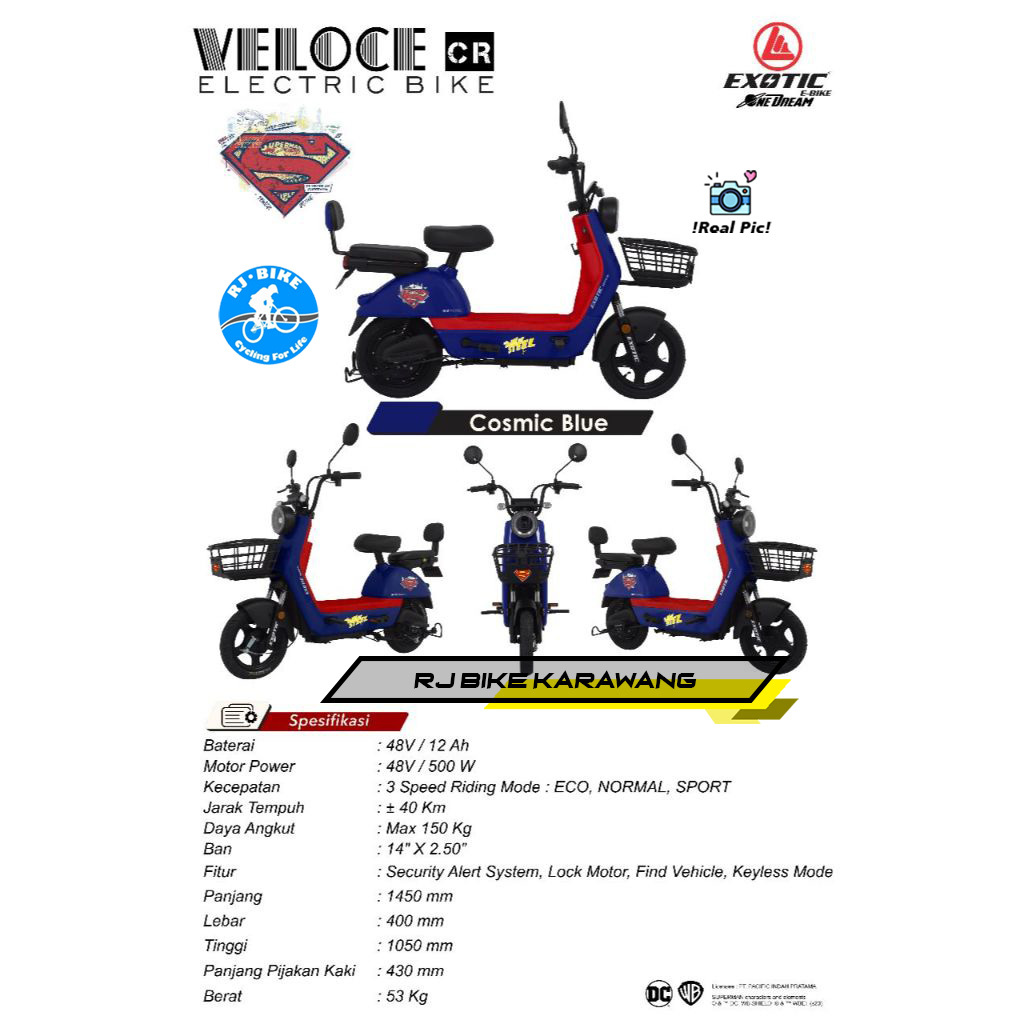 SEPEDA LISTRIK EXOTIC VELOCE V3, EV-922, EV-925, EV-926, EV-927, EV-928, VELOCE CR, VELOCE 1.0 DAN 1.5 14 X 2.50 DAN 16 X 2.125 DAN VELOCE 1.6 GARANSI RESMI