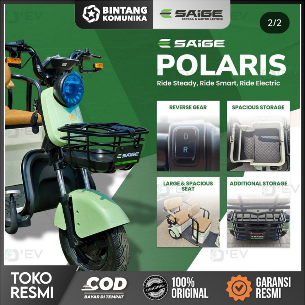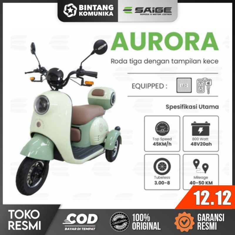 SAIGE POLARIS SEPEDA LISTRIK RODA 3 AURORA, 800watt 20Ah, Bagasi luas