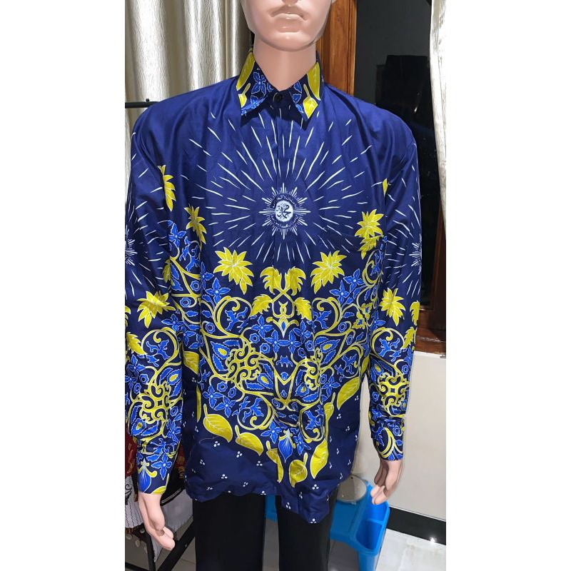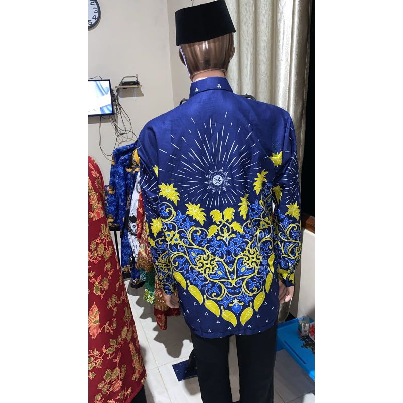 SERAGAM BATIK MUHAMADIYAH TERBARU MOTIF BIRU KUNING LAPIS FURING MODEL REGULER