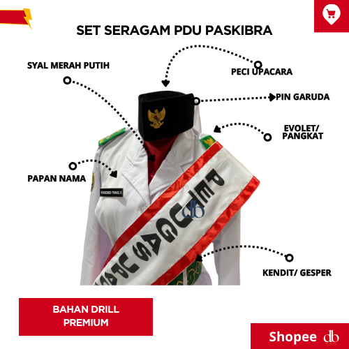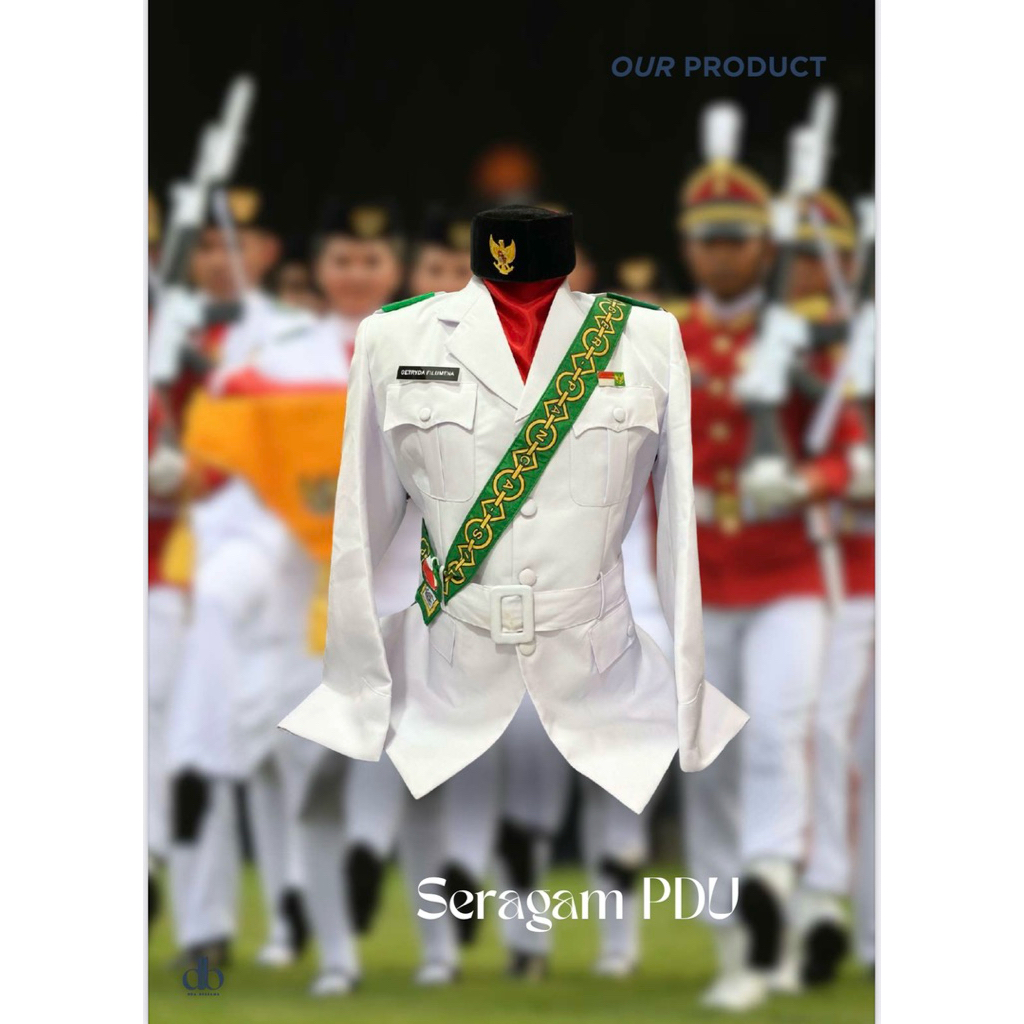 SERAGAM PDU 2 DRILL PASKIBRA PASKIBRAKA DENGAN ATRIBUT (SYAL, PANGKAT, PIN MPG, PECI)