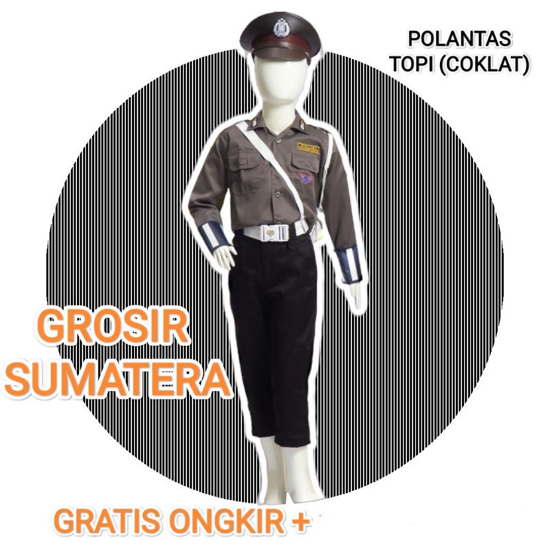 SERAGAM POLISI ANAK KARNAVAL / POLANTAS CILIK CELANA TOPI COKLAT / ACEH MEDAN NIAS PEKAN BARU BINJAI LANGKAT PALEMBANG LAMPUNG SINGKIL LHOKSEMAWE / SERAGAM ANAK KARNAVAL BAJU CITA CITA SERAGAM PROFESI