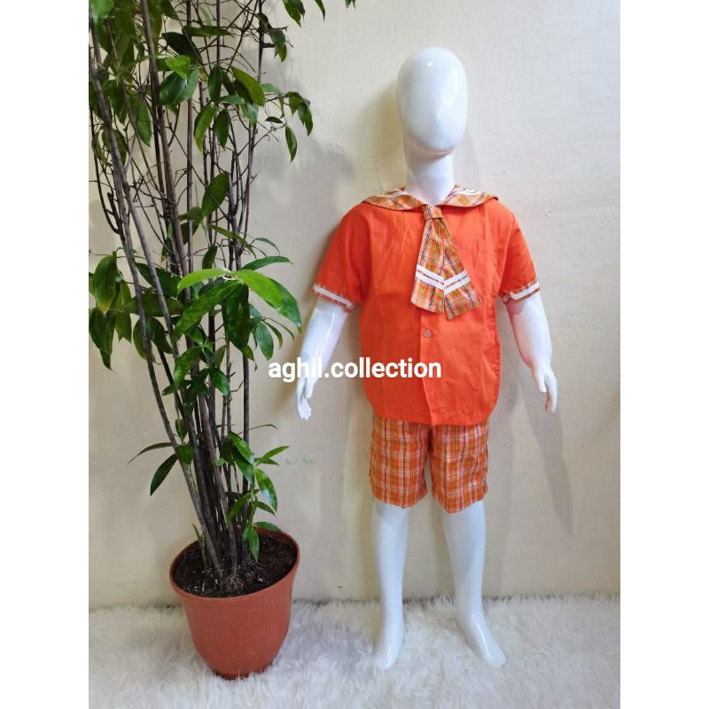 SERAGAM TK/PAUD BAJU TK/PAUD KOTAK-KOTAK AL OREN PENDEK