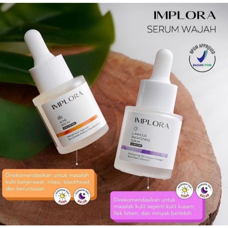 SERUM IMPLORA 20ML / SERUM WAJAH IMPLORA / SERUM ACNE IMPLORA / SERUM LUMINOUS BRIGHTENING IMPLORA / SERUM MIDNIGHT IMPLORA / SERUM PEELING IMPLORA 20ML