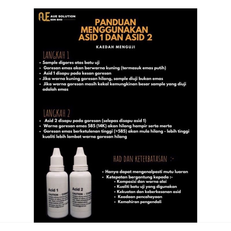 SET ACID 1 & ACID 2 ( 1 LITER ) ALAT UJI KADAR EMAS 1L